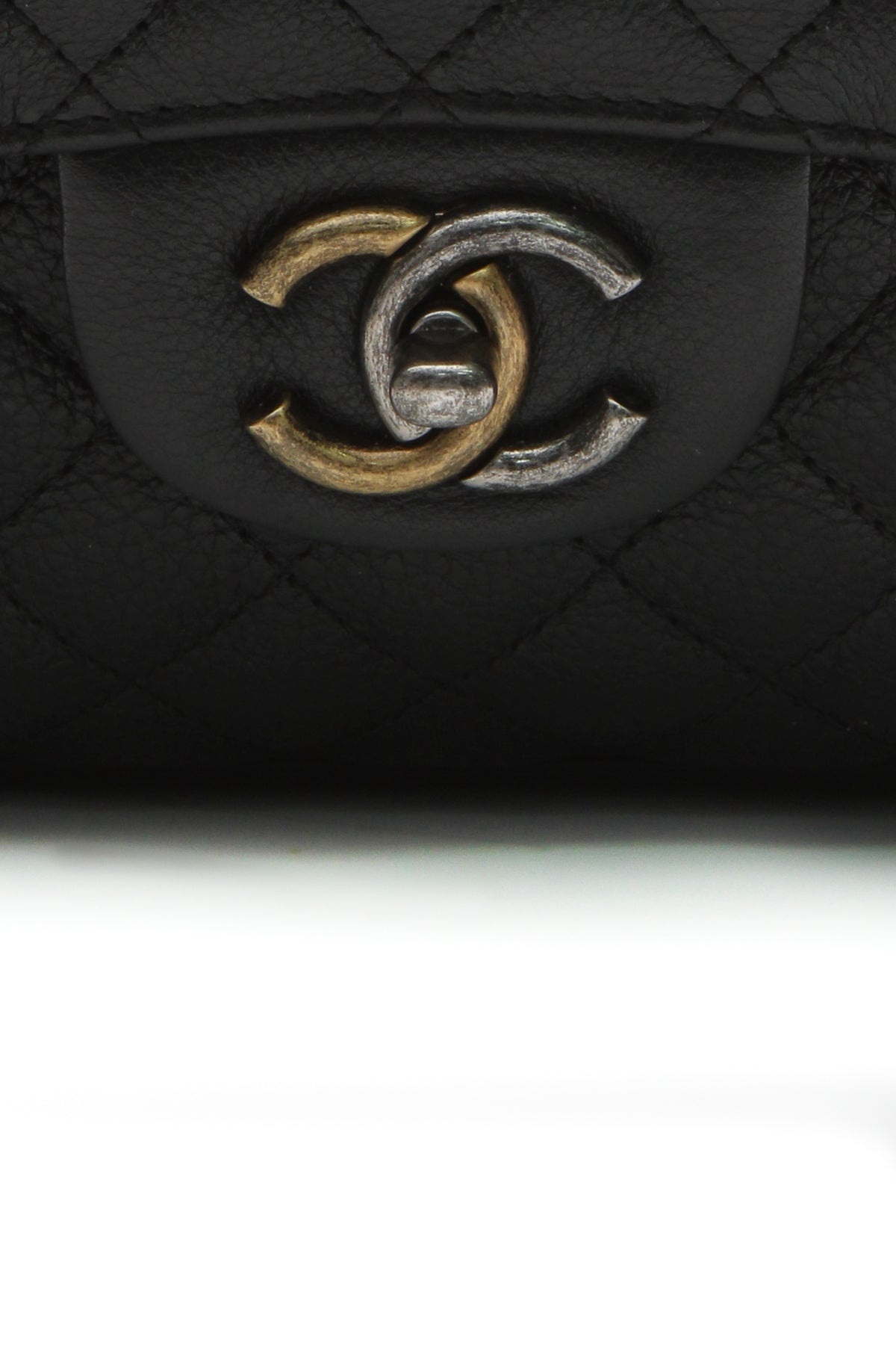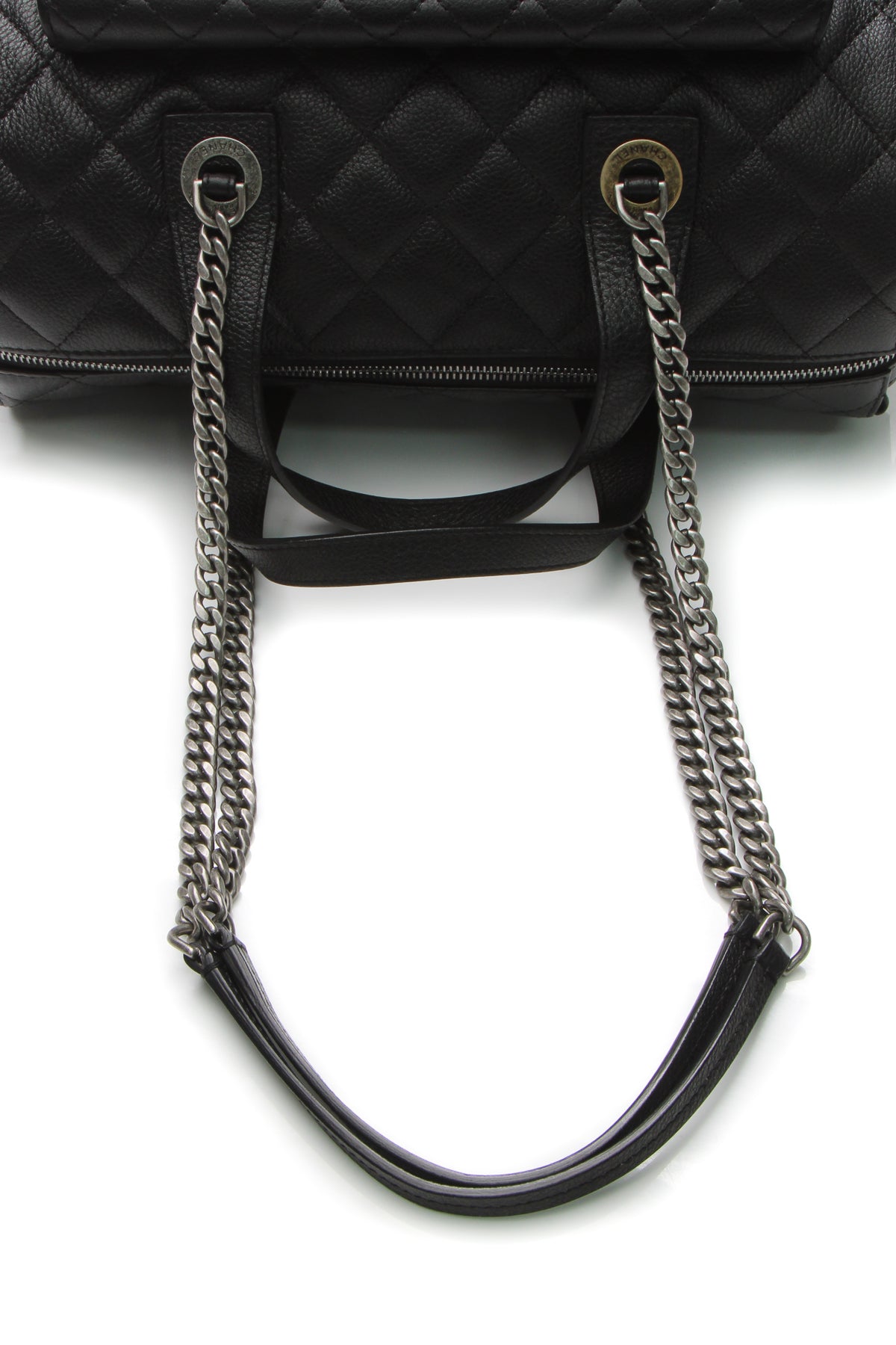 Add Chanel elegance to you everyday look with this authentic Casual Pocket Bowling bag. In this beautiful piece, a black grained calfskin exterior is given a modern update with an exterior pocket. Unsnap this gorgeous bag to find ample storage that will keep you organized and carry your everyday essentials with poise and grace.