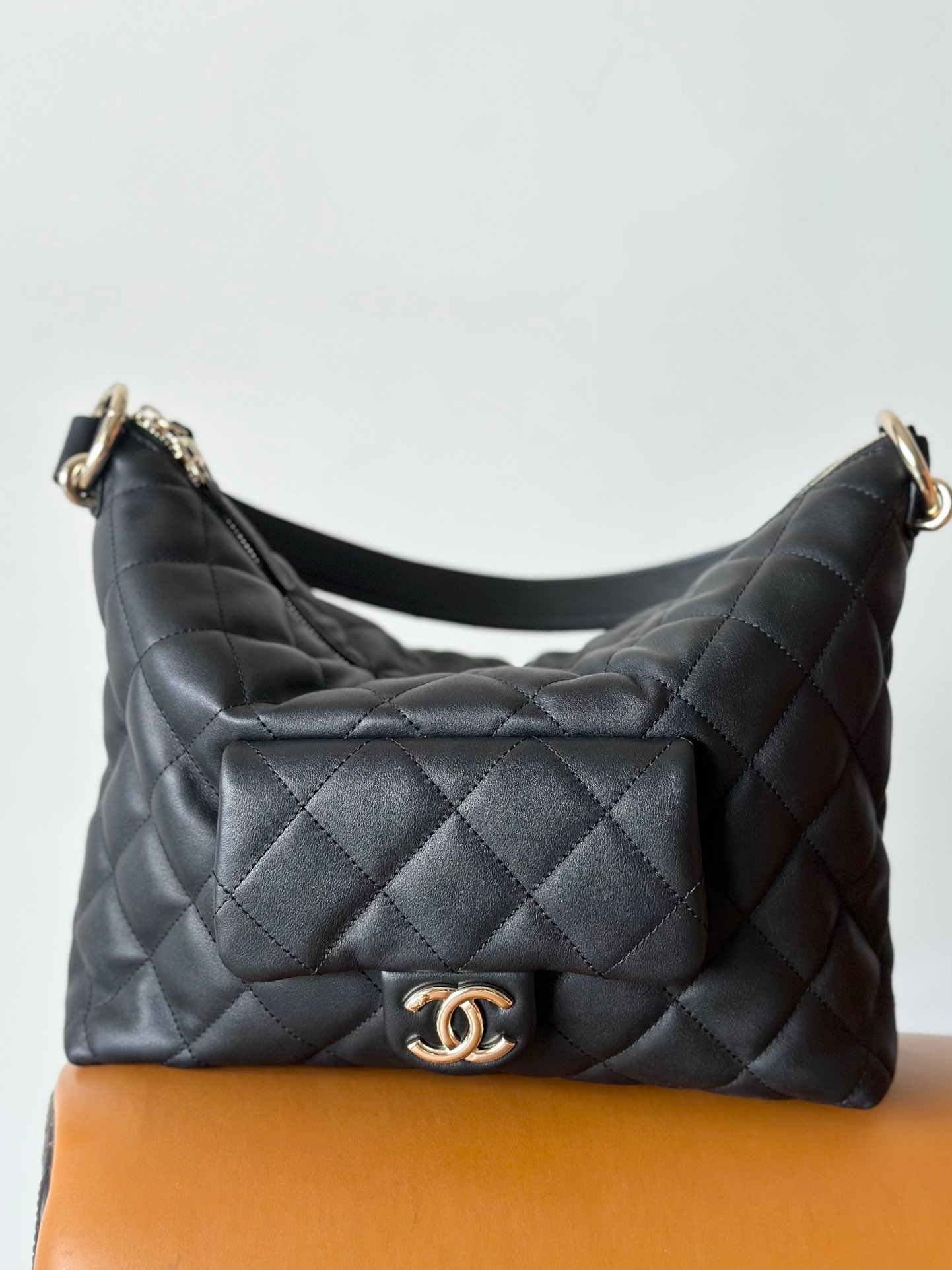 Chanel 23B Calfskin Black Hobo Bag 11in/28cm