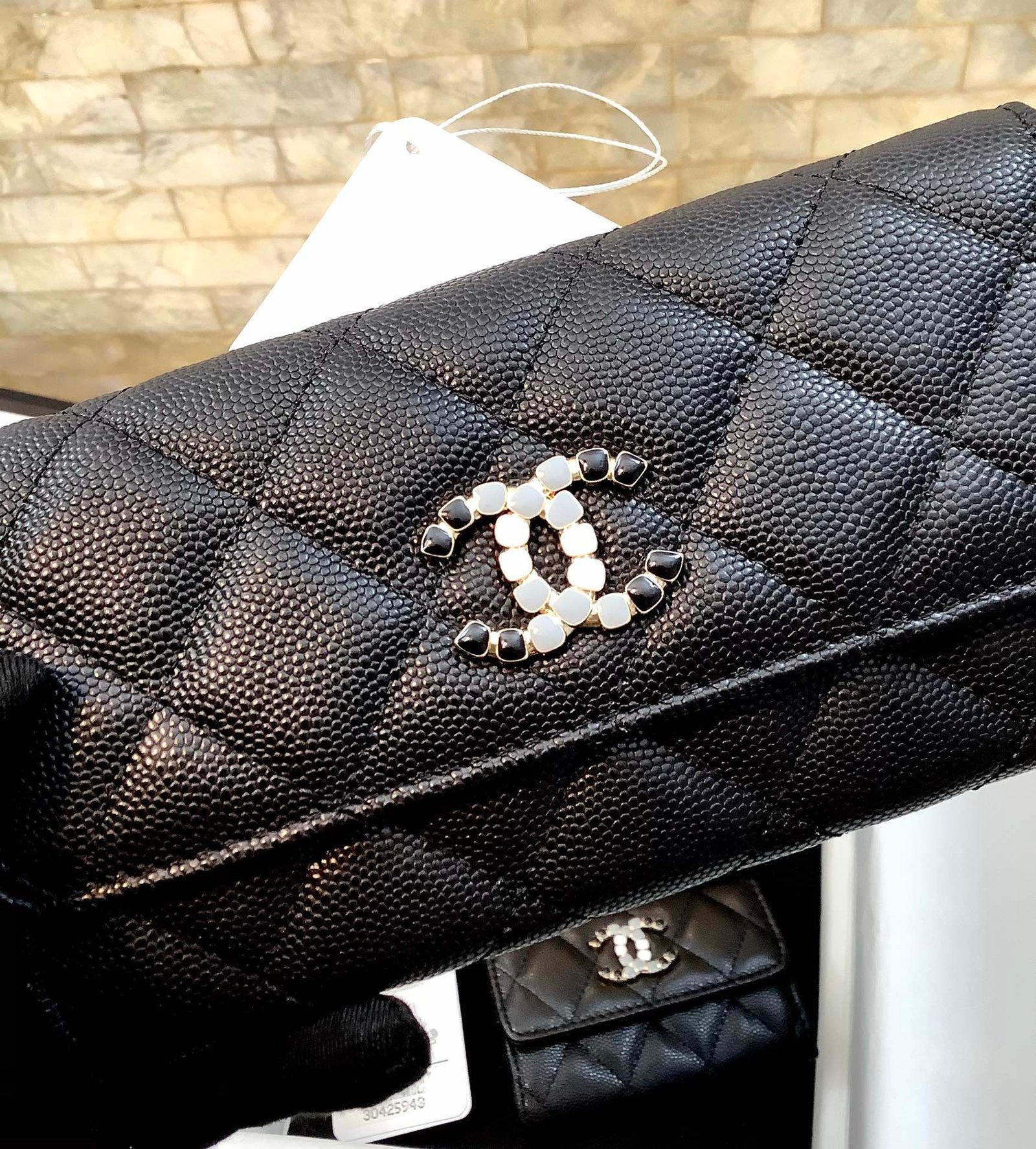 CHANEL Black Caviar Gold CC Classic Large Clutch Bag A82552