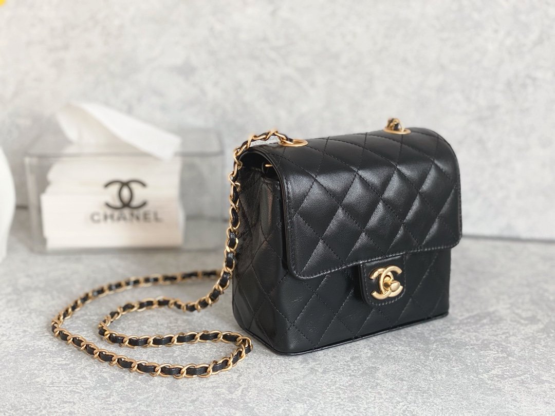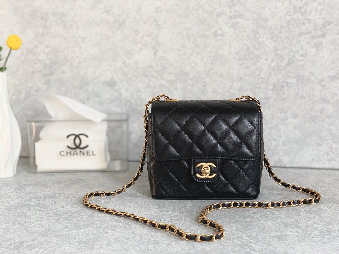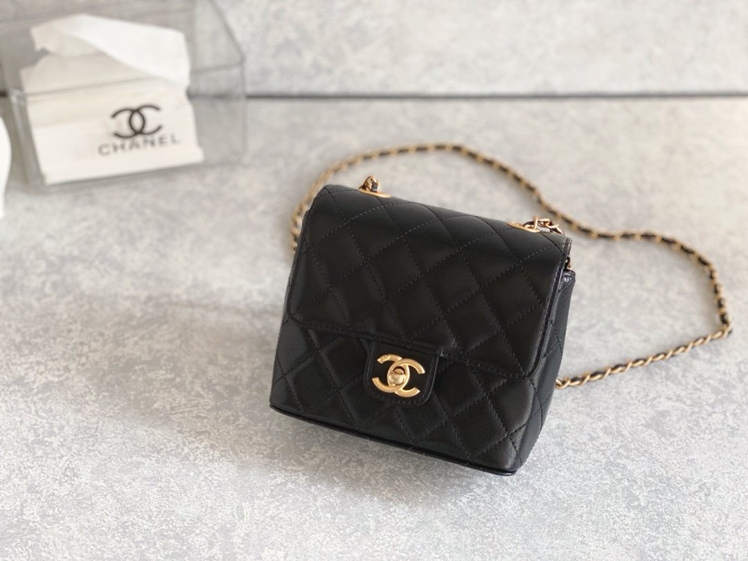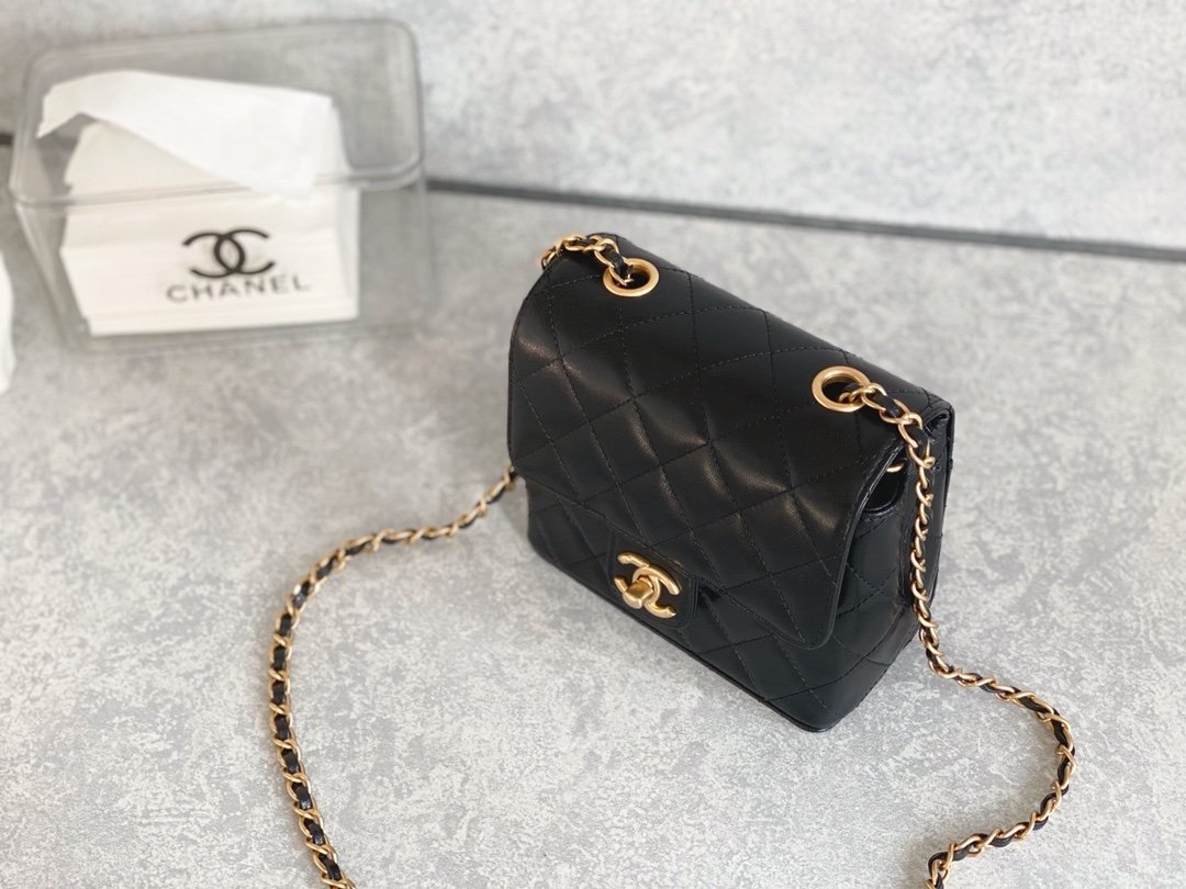 Mini Flap Bag With Handle is formatted in an elongated, vertical direction. The bag has a mini flap and a top handle for convenience during use. In addition, familiar elements such as the strap, the nested two-C logo are still seen in this new design. The fabric layer is the highlight when it is combined between cotton and Chanel’s signature fabric. Colors of black with tight embossed diamond-shaped stitching.