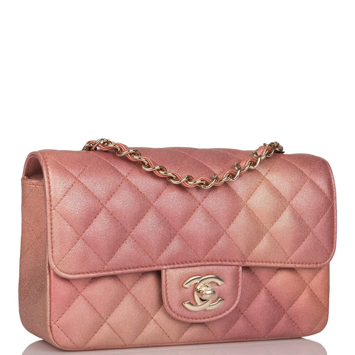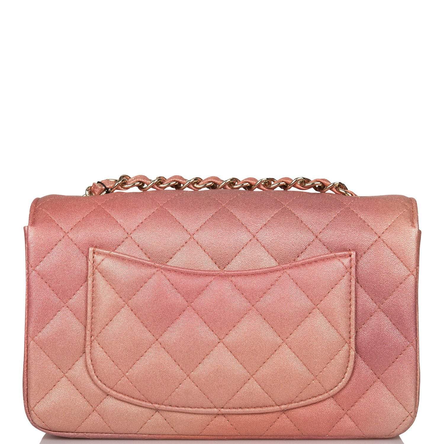 Chanel Mini Rectangular Flap Bag Pink Iridescent Lambskin Silver Hardware
