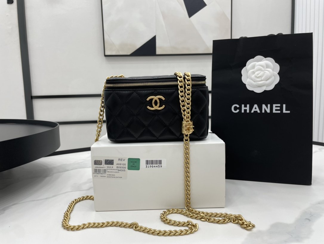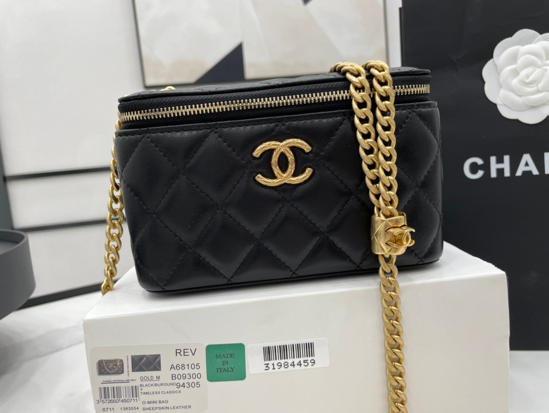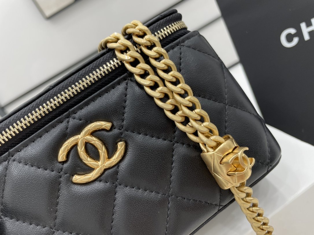 Chanel Small Vanity Case Black With Gold Zipper For Women, Women’s Bags 5.9in/15cm