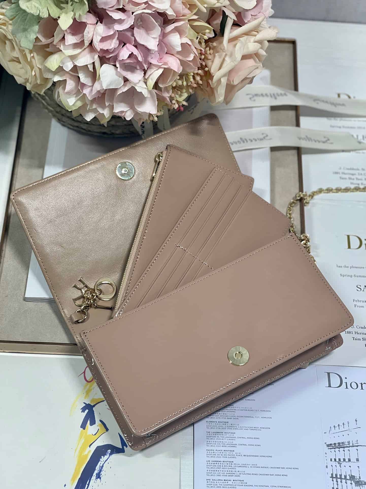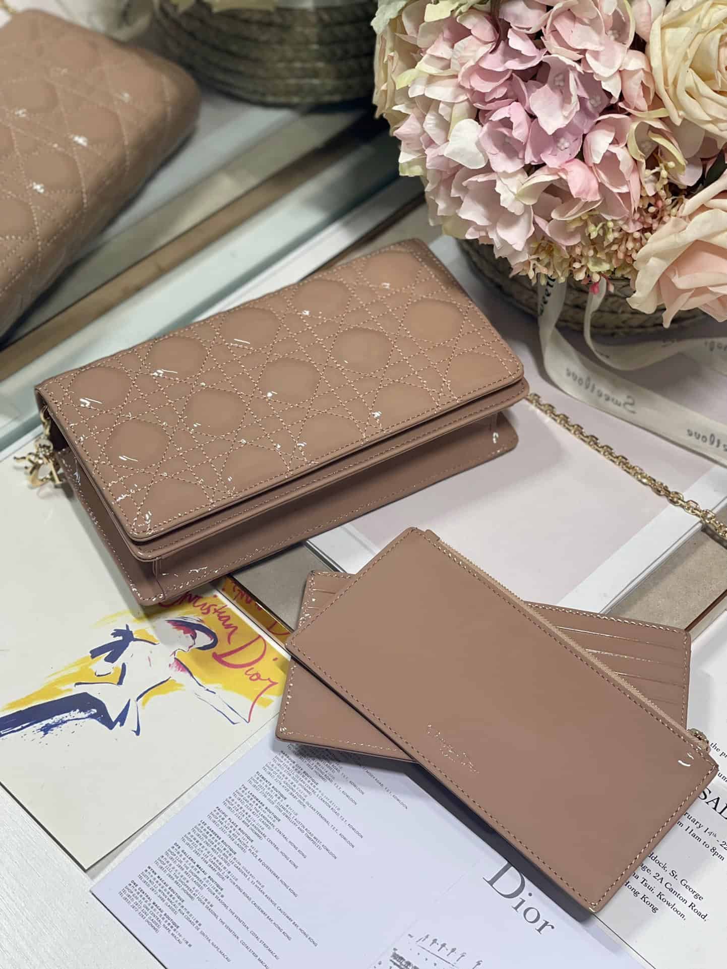 The Lady Dior pouchis distinguished by the emblematic Cannage topstitching and a detachable ‘D.I.O.R.’ charm. This unique accessory may be worn with or without its chain strap and features two removable elements: a card holder and a zipped pouch. Each may be carried individually. The pouch will instantly stand out and pairs well with other pieces from the same line.