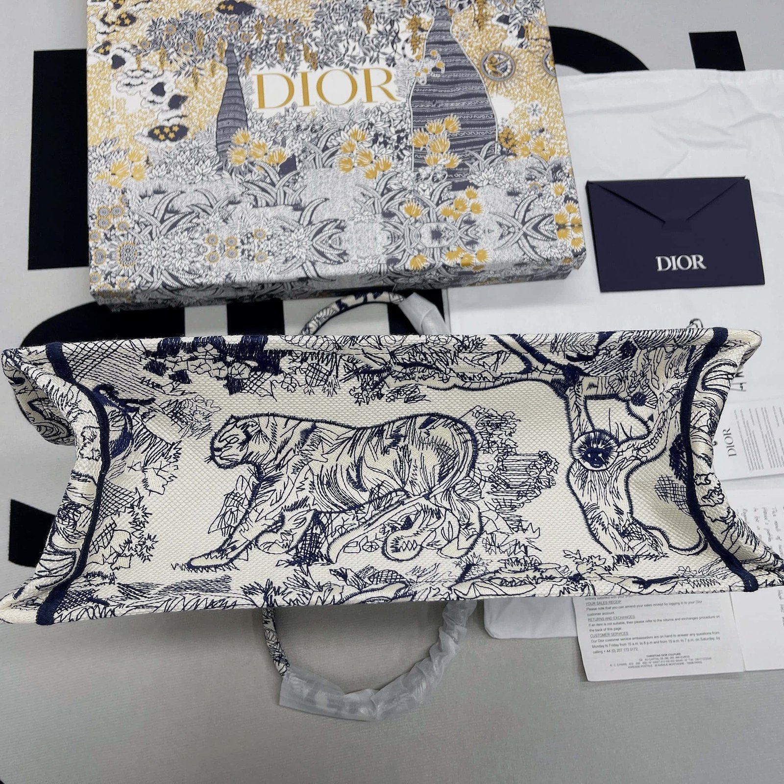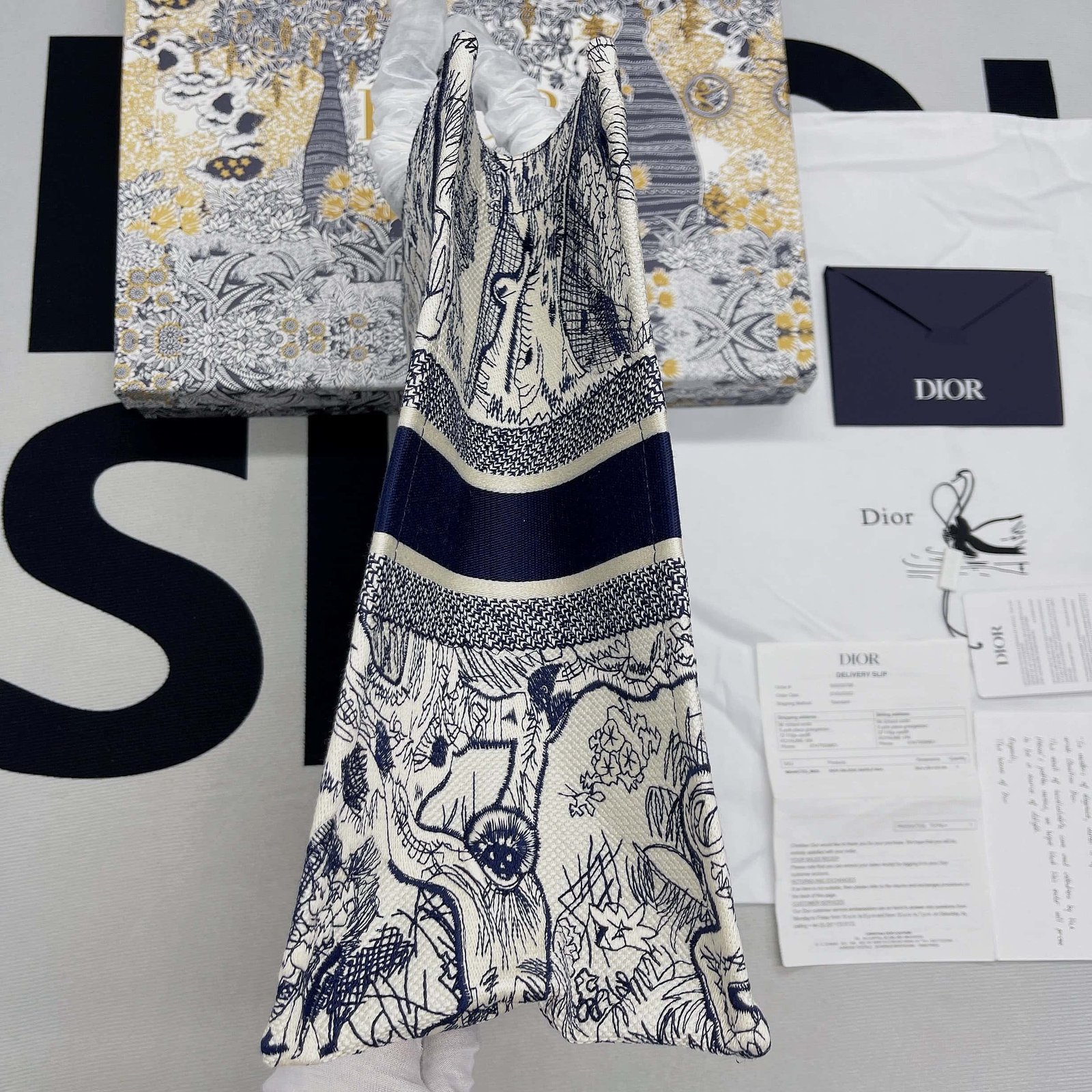The Dior Book Tote has become a staple of the Dior aesthetic. Designed to hold all the daily essentials, a variation of the iconic pattern. Adorned with the ‘CHRISTIAN DIOR PARIS’ signature on the front, the large tote and may be carried by hand or worn over the shoulder.