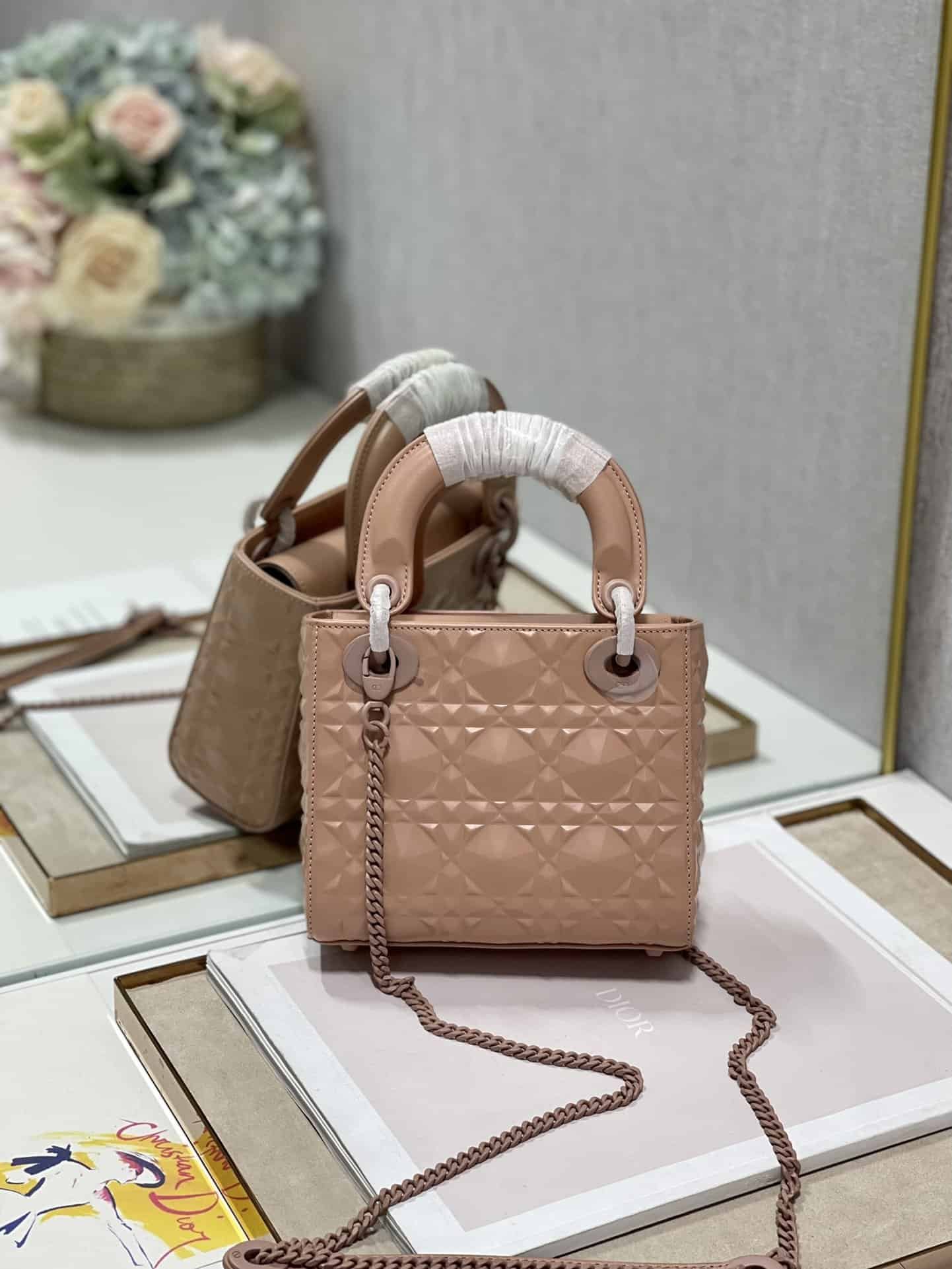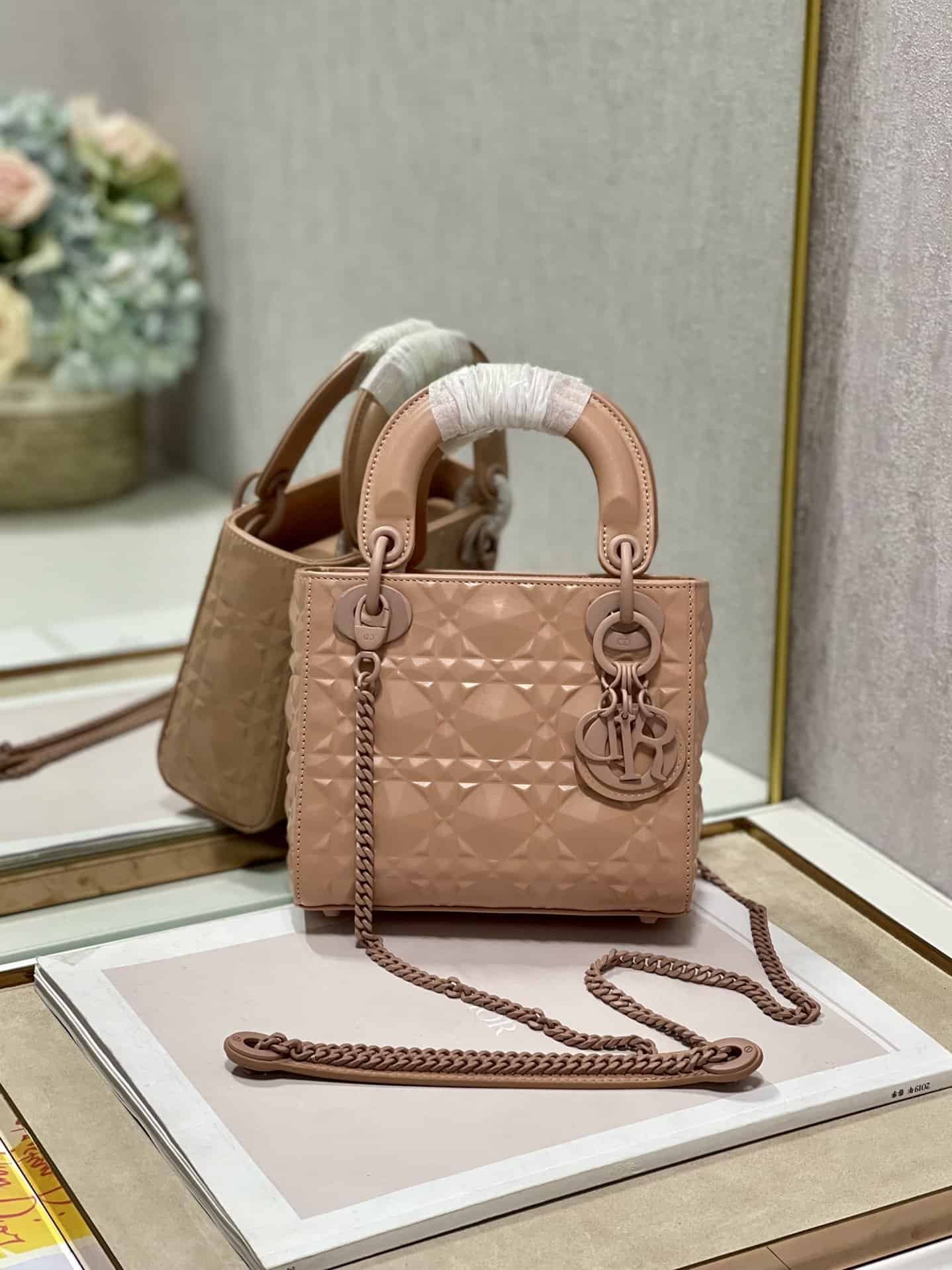 Christian Dior Mini Lady Dior Bag Cannage with Beaded Motif, Brown, For Women Women?s Handbags, Crossbody Bags, 18cm CD