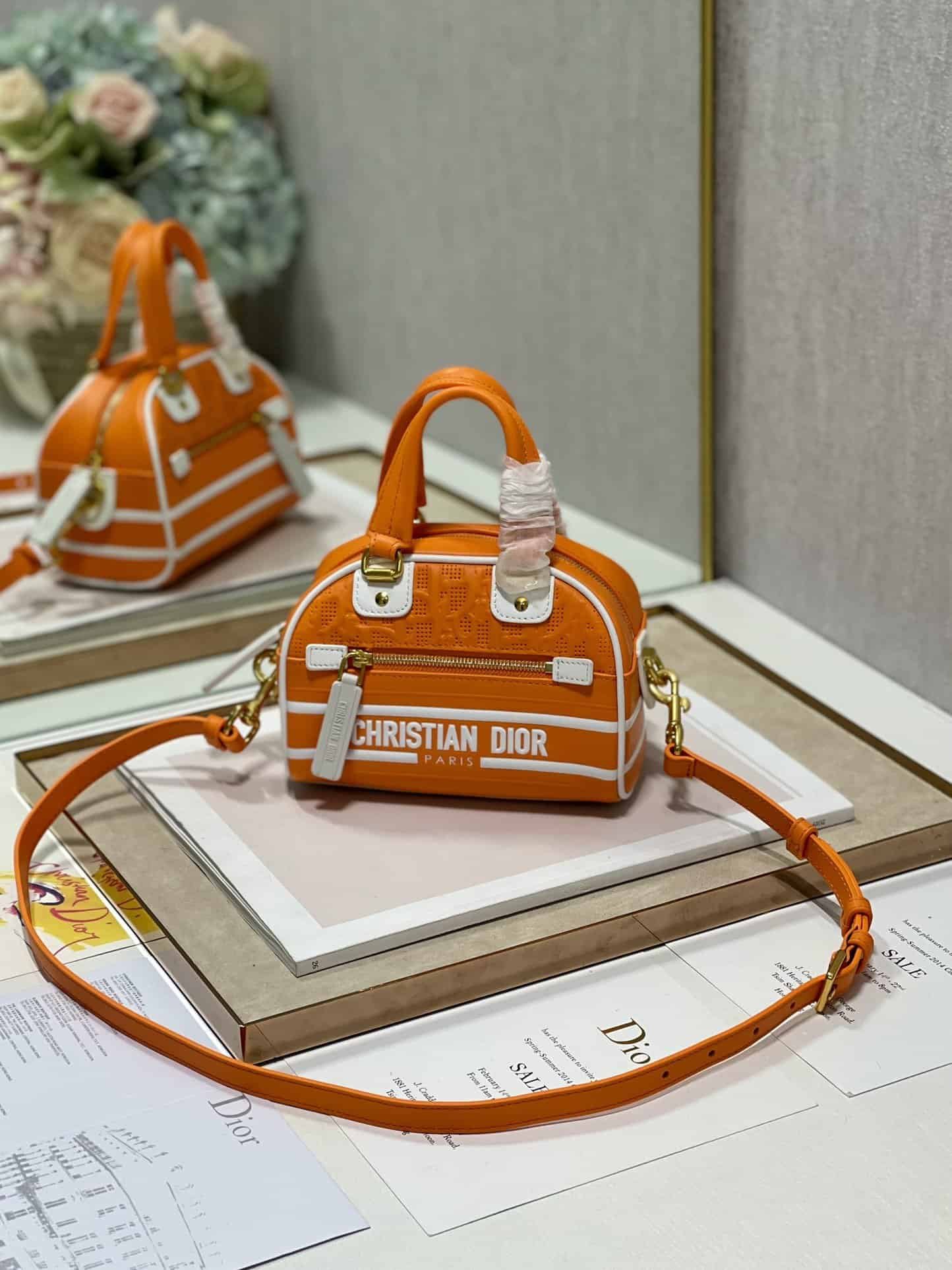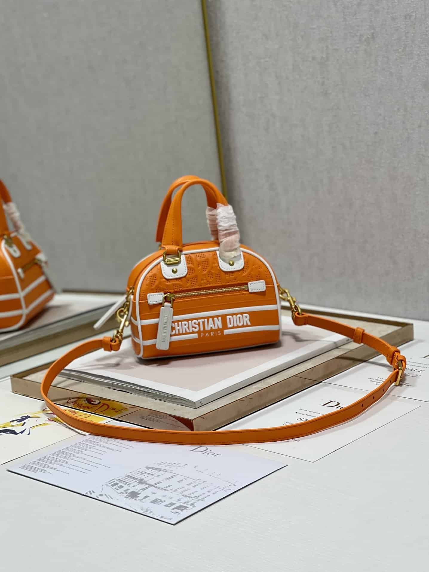 Christian Dior Mini Vibe Zip Bowling Bag, Orange, For Women Women’s Handbags, Bowling Bags, 17cm CD