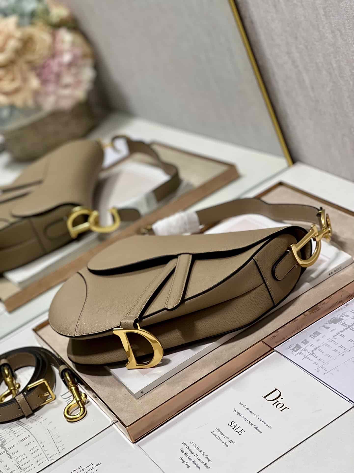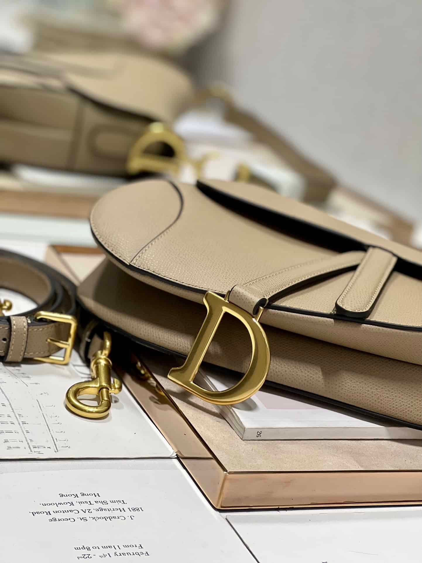 • Maria Grazia Chiuri brings a fresh update to the iconic Saddle bag. Crafted in black grained, the legendary design features a Saddle flap with a magnetic ‘D’ stirrup clasp, as well as an antique gold-finish metal ‘CD’ signature on either side of the strap. Featuring a thin, adjustable and removable shoulder strap, the Saddle bag may be carried by hand, worn over the shoulder or crossbody.