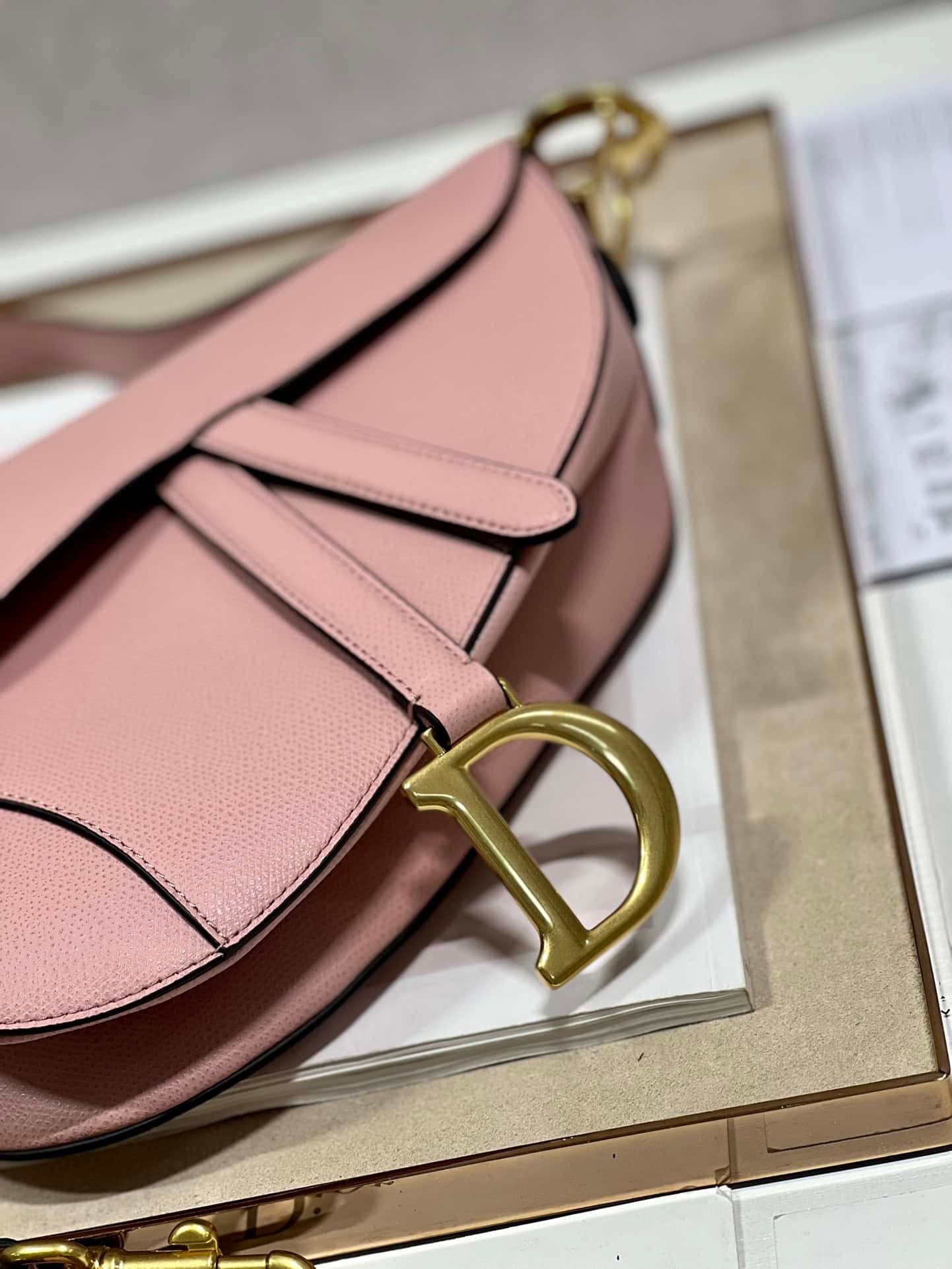 • Maria Grazia Chiuri brings a fresh update to the iconic Saddle bag. Crafted in black grained, the legendary design features a Saddle flap with a magnetic ‘D’ stirrup clasp, as well as an antique gold-finish metal ‘CD’ signature on either side of the strap. Featuring a thin, adjustable and removable shoulder strap, the Saddle bag may be carried by hand, worn over the shoulder or crossbody.