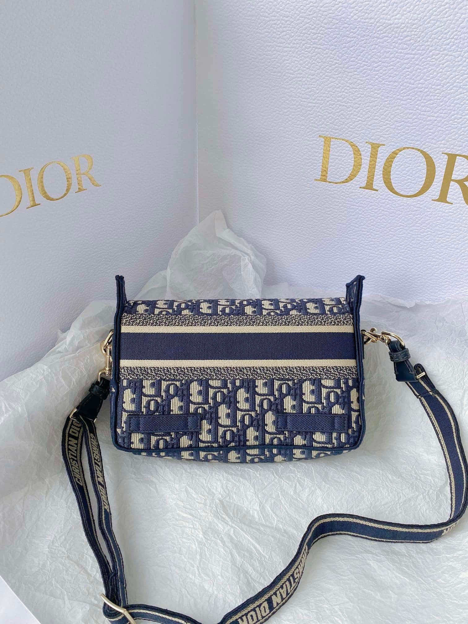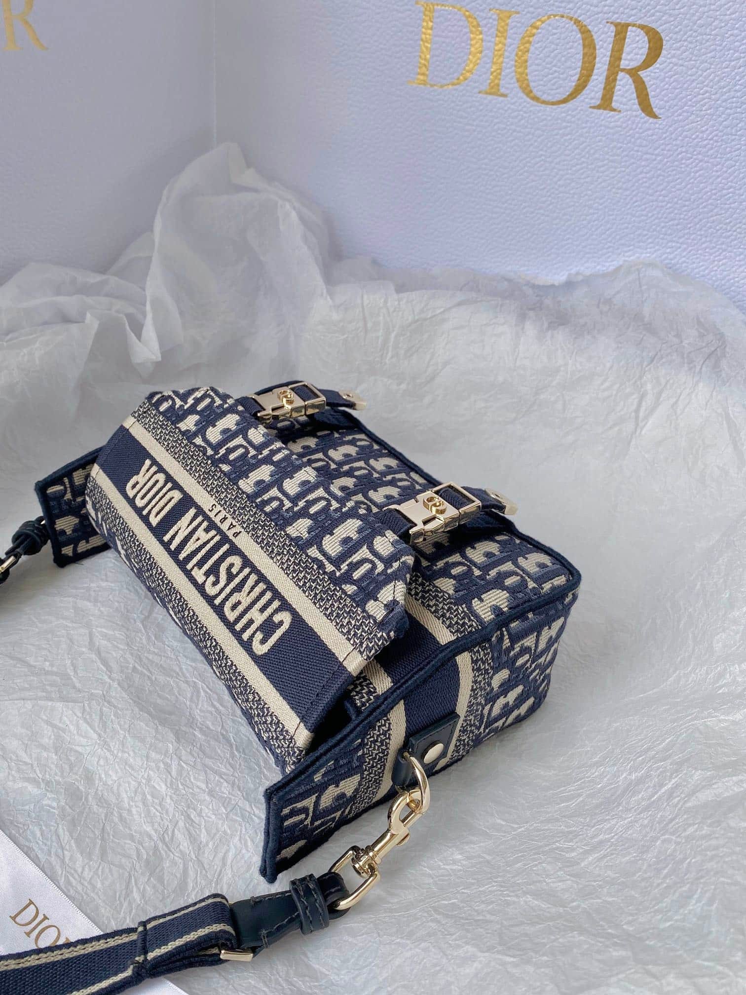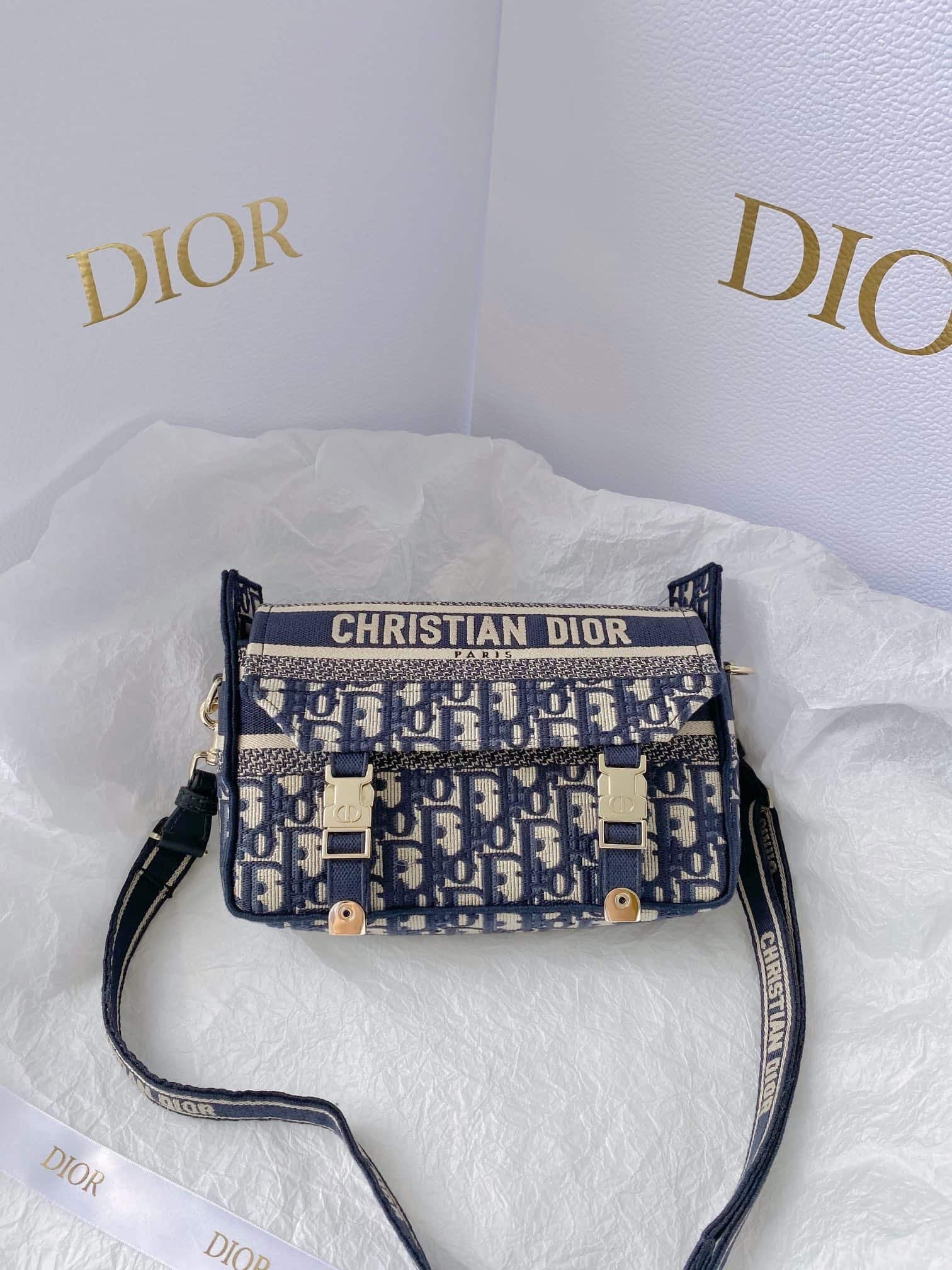 Maria Grazia Chiuri has updated the classic messenger bag by adding signature Dior details for a relaxed and modern look. Fully embroidered with the blue Dior Oblique motif, the bag is enhanced by a ‘CHRISTIAN DIOR PARIS’ signature flap, as well as sportswear-inspired ‘CD’ buckles. Equipped with an adjustable and removable shoulder strap, the small, compact messenger bag can be worn over the shoulder or crossbody, and will make an ideal urban companion.
