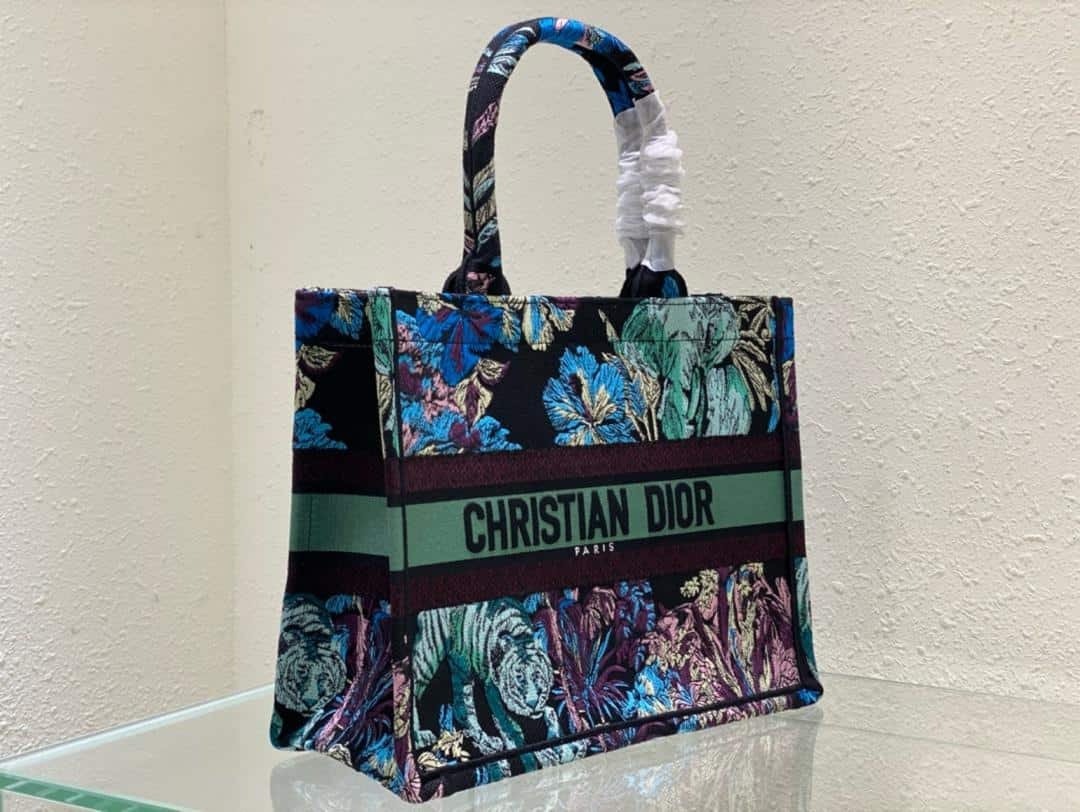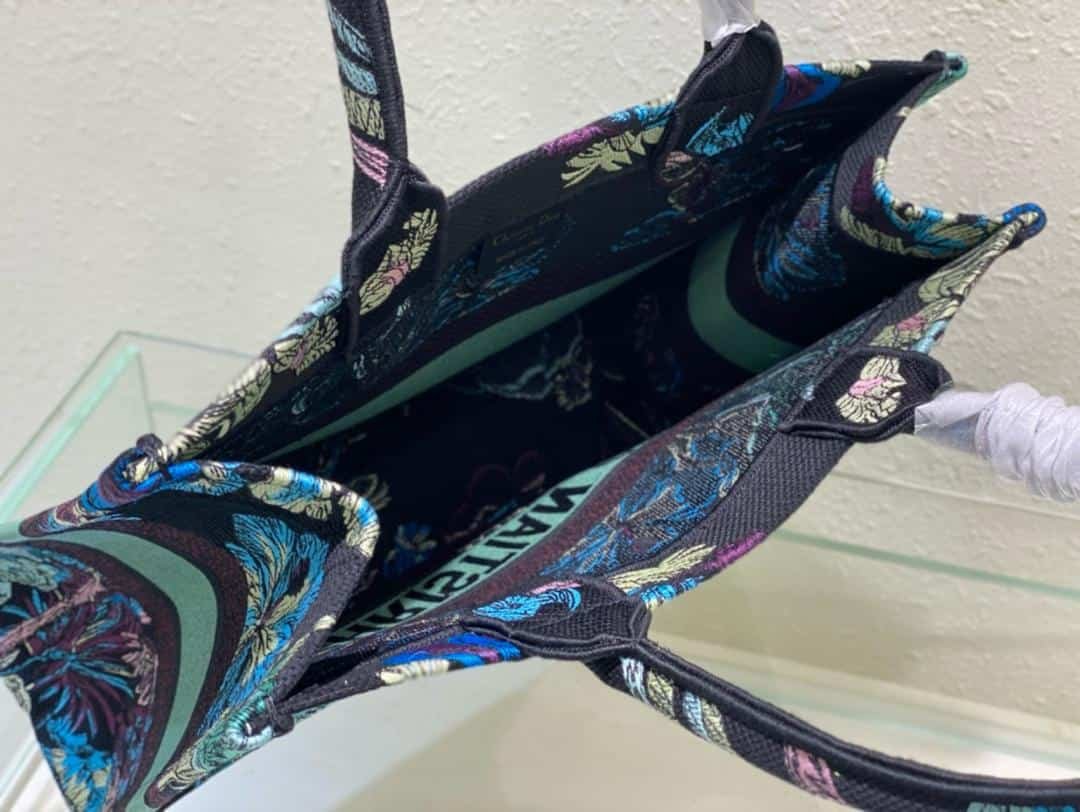 The Dior Book Tote is an original creation introduced by Christian Dior’s Creative Director, Maria Grazia Chiuri, and has become a staple of the Dior aesthetic. Designed to hold all the daily essentials, it is fully embroidered with the blue multicolor Toile de Jouy Voyage motif by Pietro Ruffo, setting Mr. Dior’s iconic pattern into the heart of Indian flora and fauna. Adorned with a Christian Dior Paris signature on the front, the medium tote exemplifies the House’s signature savoir-faire and may be carried by hand or worn over the shoulder.
