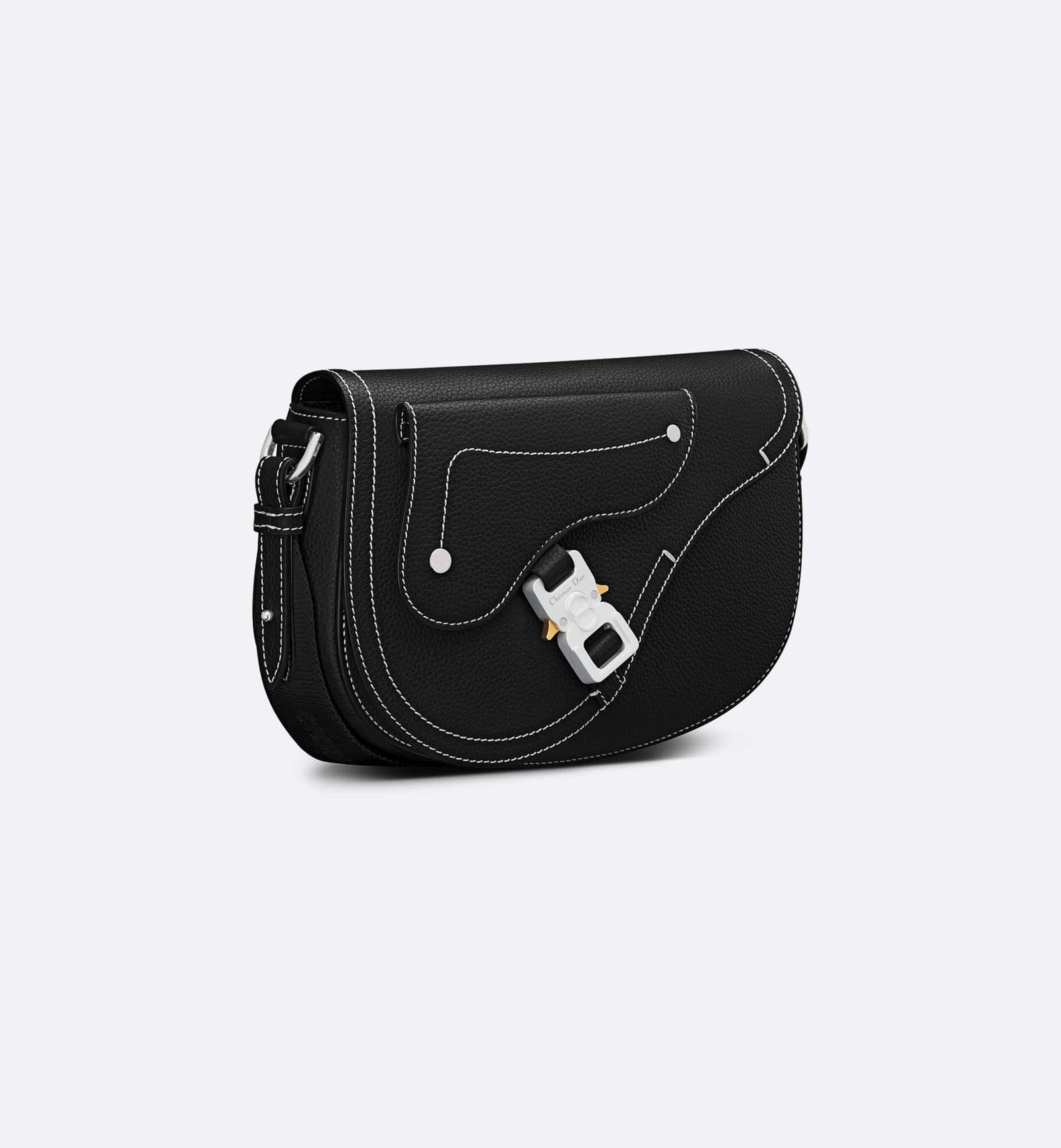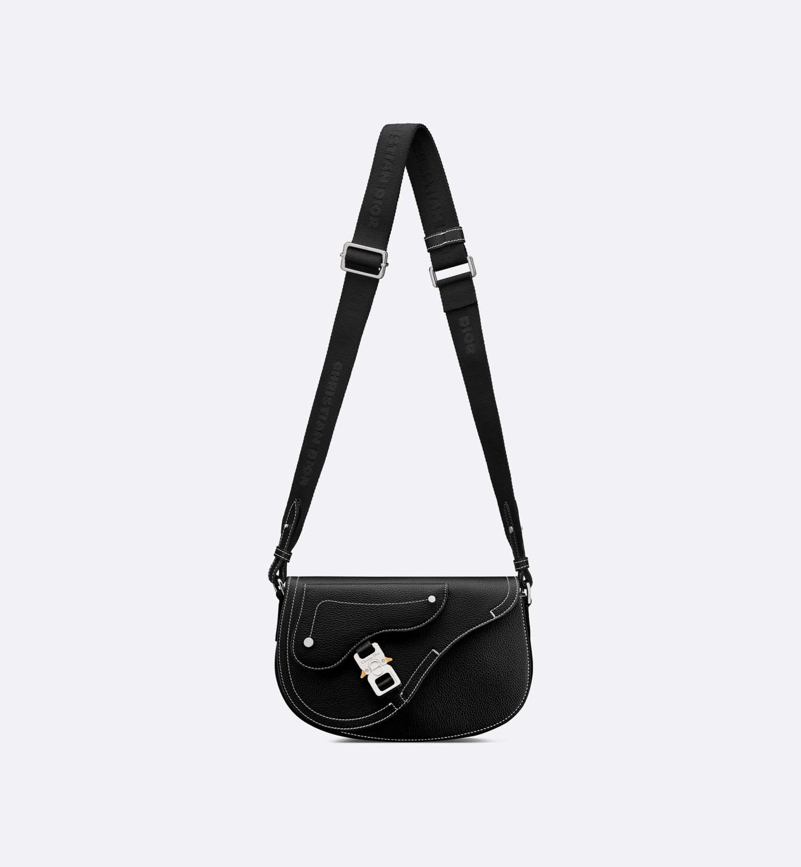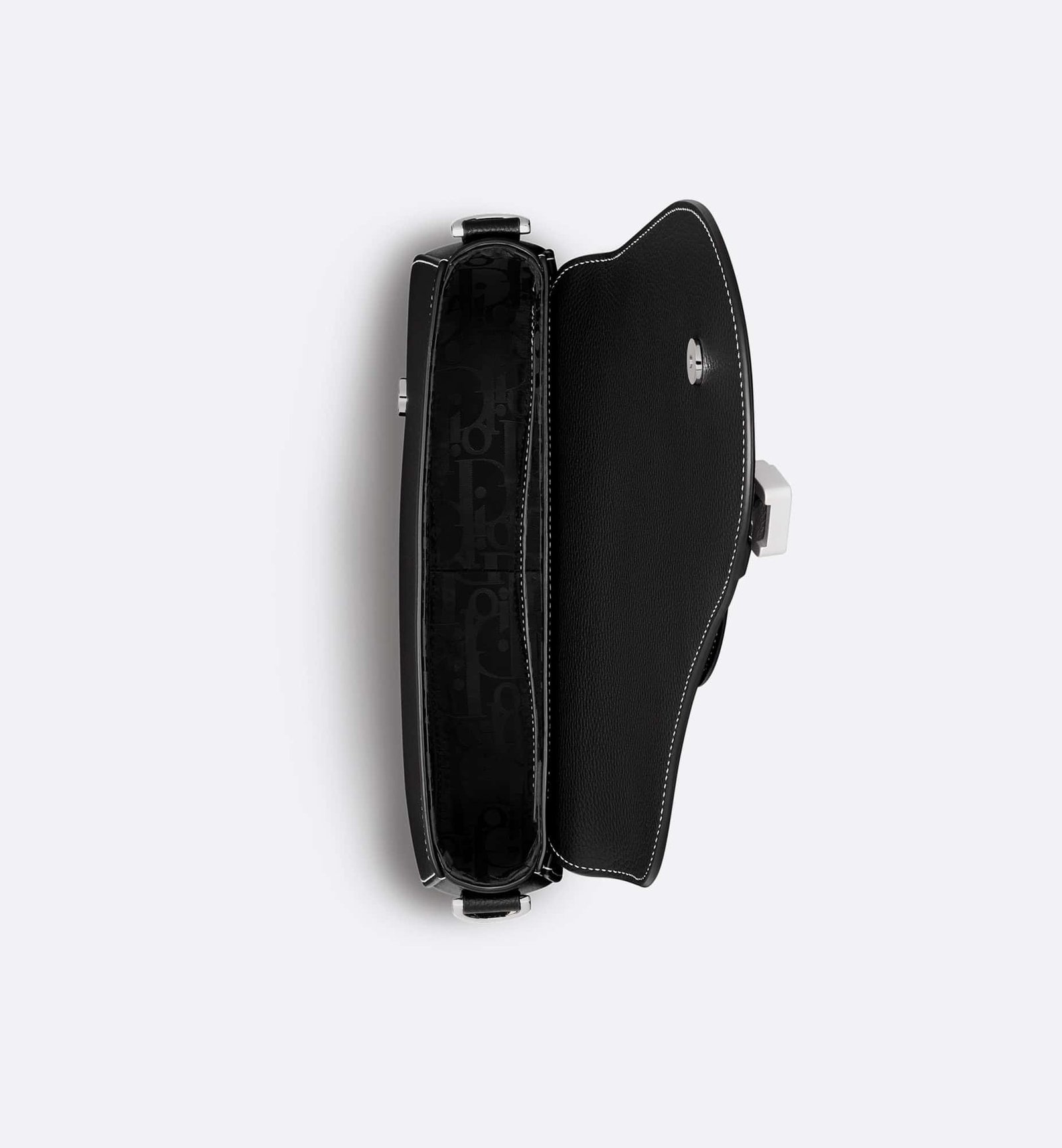 • New for Fall 2024, the Saddle messenger bag is a compact and modern creation. Constructed in black grained , it features a Saddle flap enhanced by an aluminum buckle. Its spacious interior has a slip pocket to house all the essentials, while the adjustable Christian Dior nylon jacquard strap allows the bag to be worn over the shoulder or crossbody.