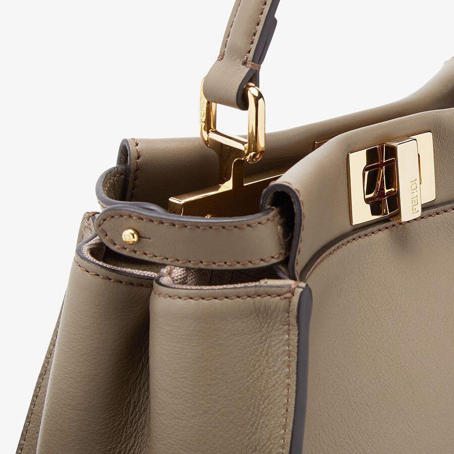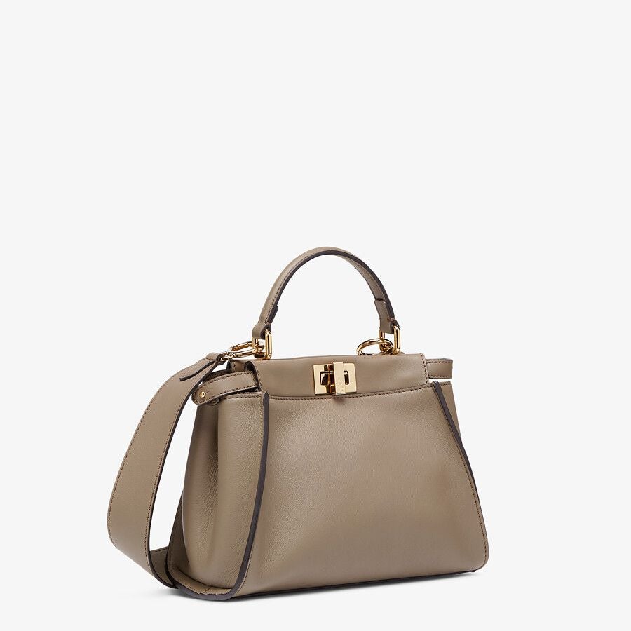 Iconic small Peekaboo bag, made of gray leather and embellished with the classic twist lock on both sides.