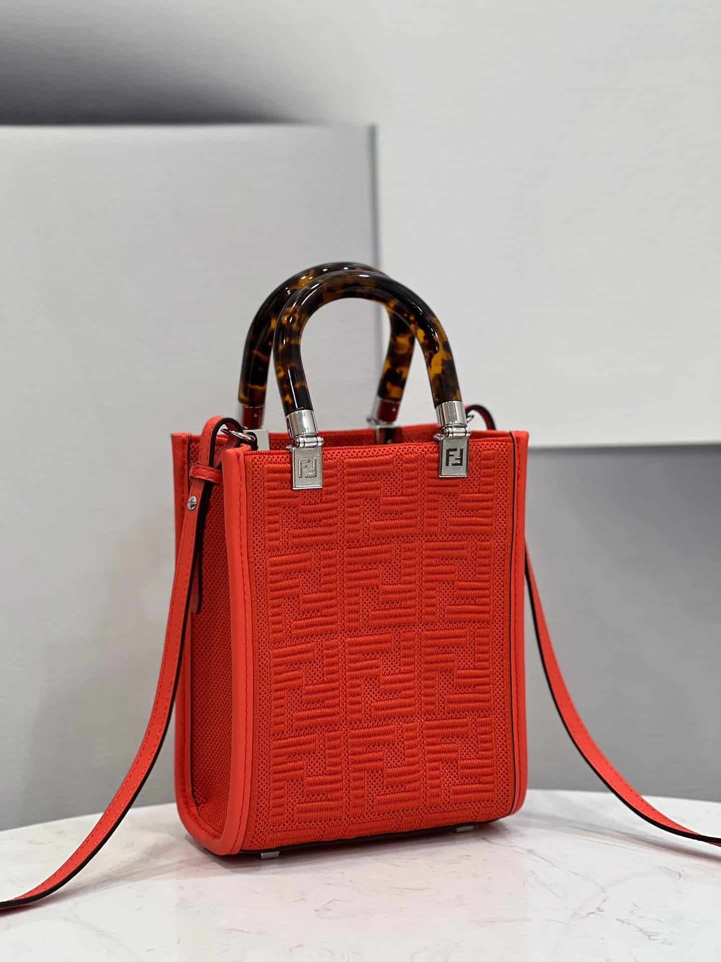 Fendi Mini Sunshine Shopper Red For Women, Women’s Handbags, Shoulder And CrossBody Bags 7.1in/18cm FF 8BS051