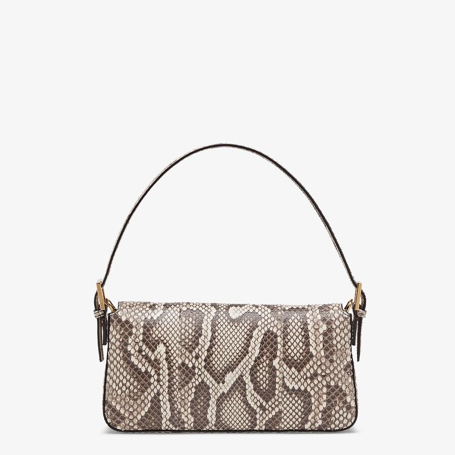 Medium Baguette 1997 bag made of luxury, natural-colored python leather decorated with FF closure.