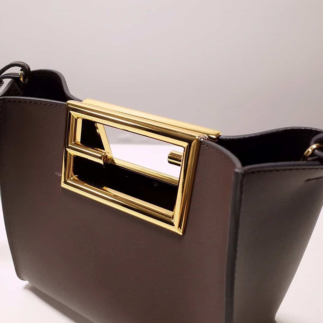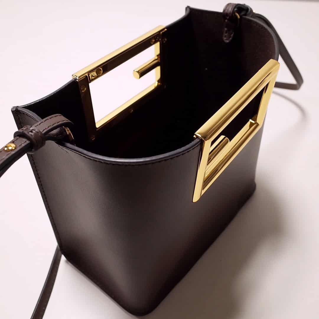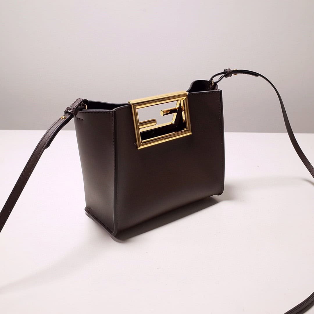 Small Fendi Way bag made of Dark Grey leather with oversize FF logo metal handles.
