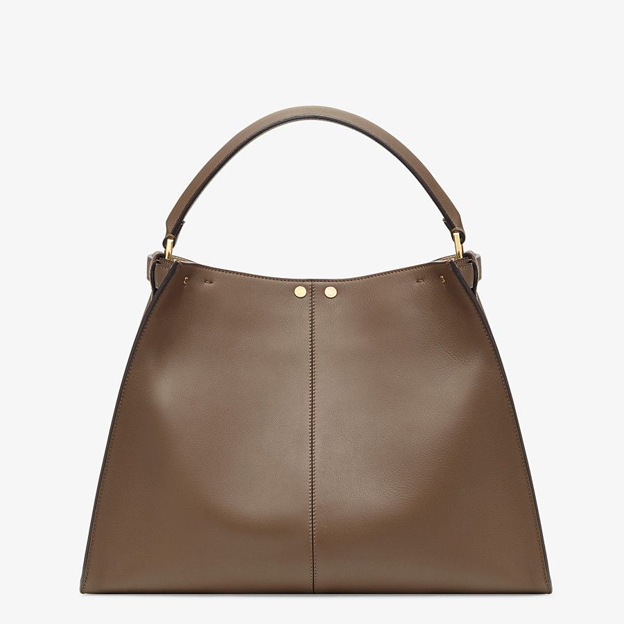 Iconic large Peekaboo X-lite bag made of brown leather and embellished with the classic twist lock.