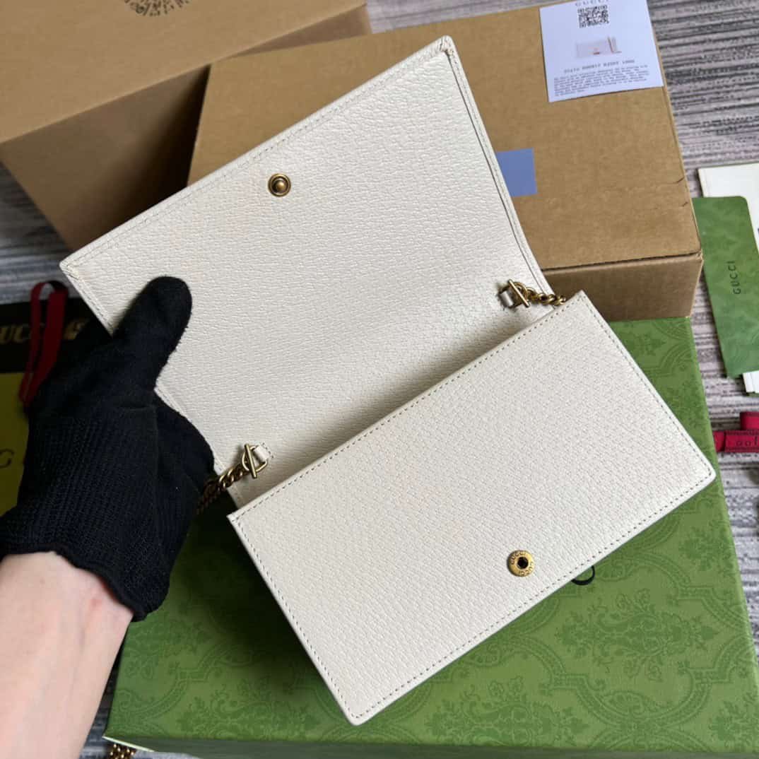 Paying homage to a material at the heart of Gucci?s heritage, this mini bag is defined by its bamboo closure. Crafted from smooth white, the accessory is completed by Guccio Gucci’s monogram hardware and a delicate chain strap.