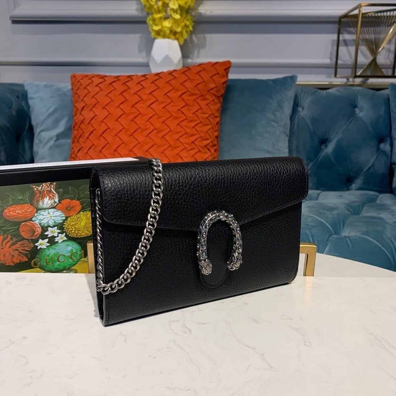 Gucci Dionysus Mini Chain Bag Black Metal-Free Tanned For Women 8in/20cm GG 401231 CAOGN 8176