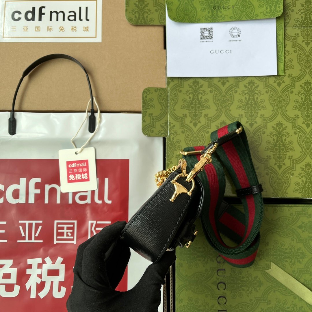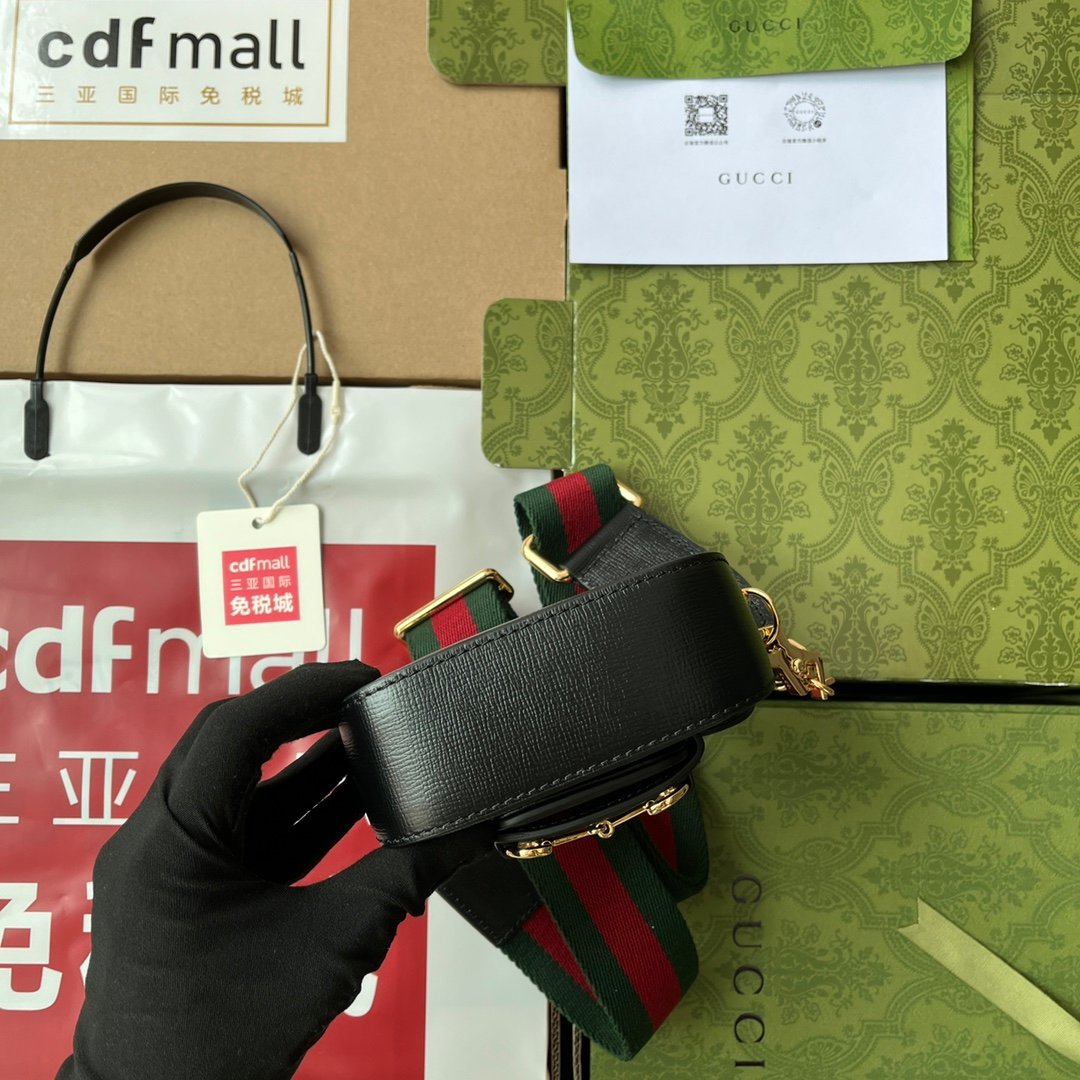 Gucci Horsebit 1955 Strap Wallet Black For Women, Women’s Bags 4.7in/12cm GG 699760 18YSG 1060