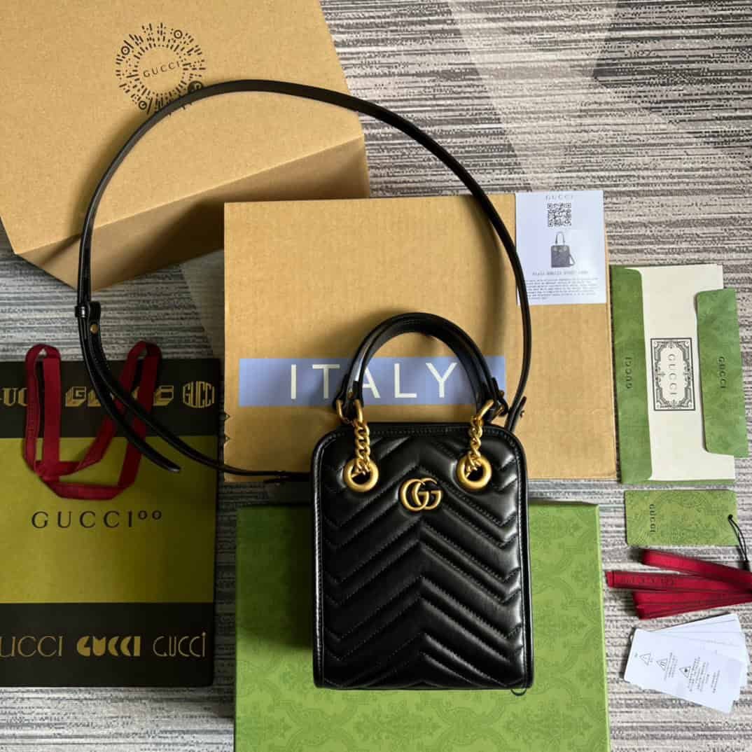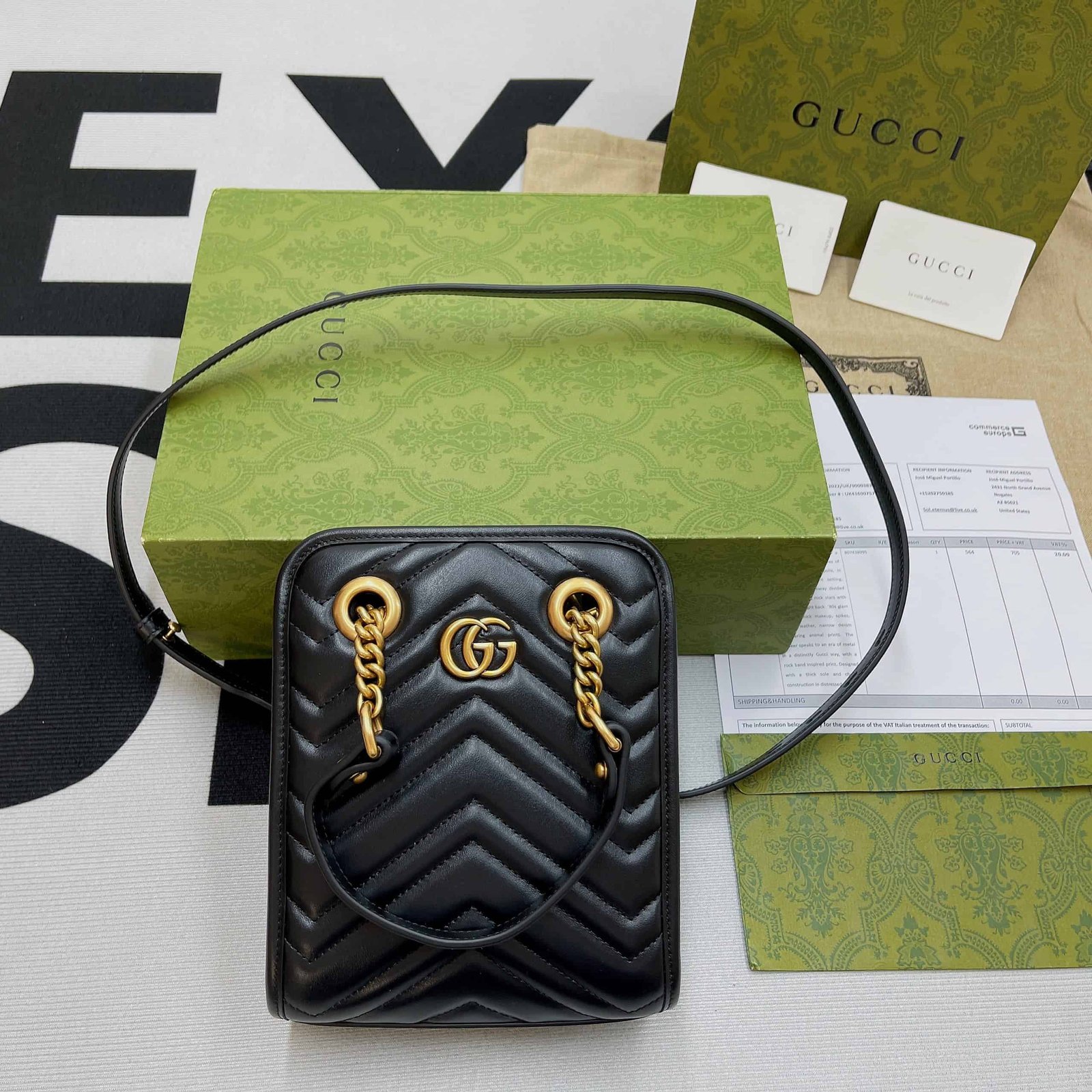 Gucci Marmont Matelasse Mini Bag Black For Women, Women’s Bags 7.5in/19cm GG ?696123 DTDHT 1000