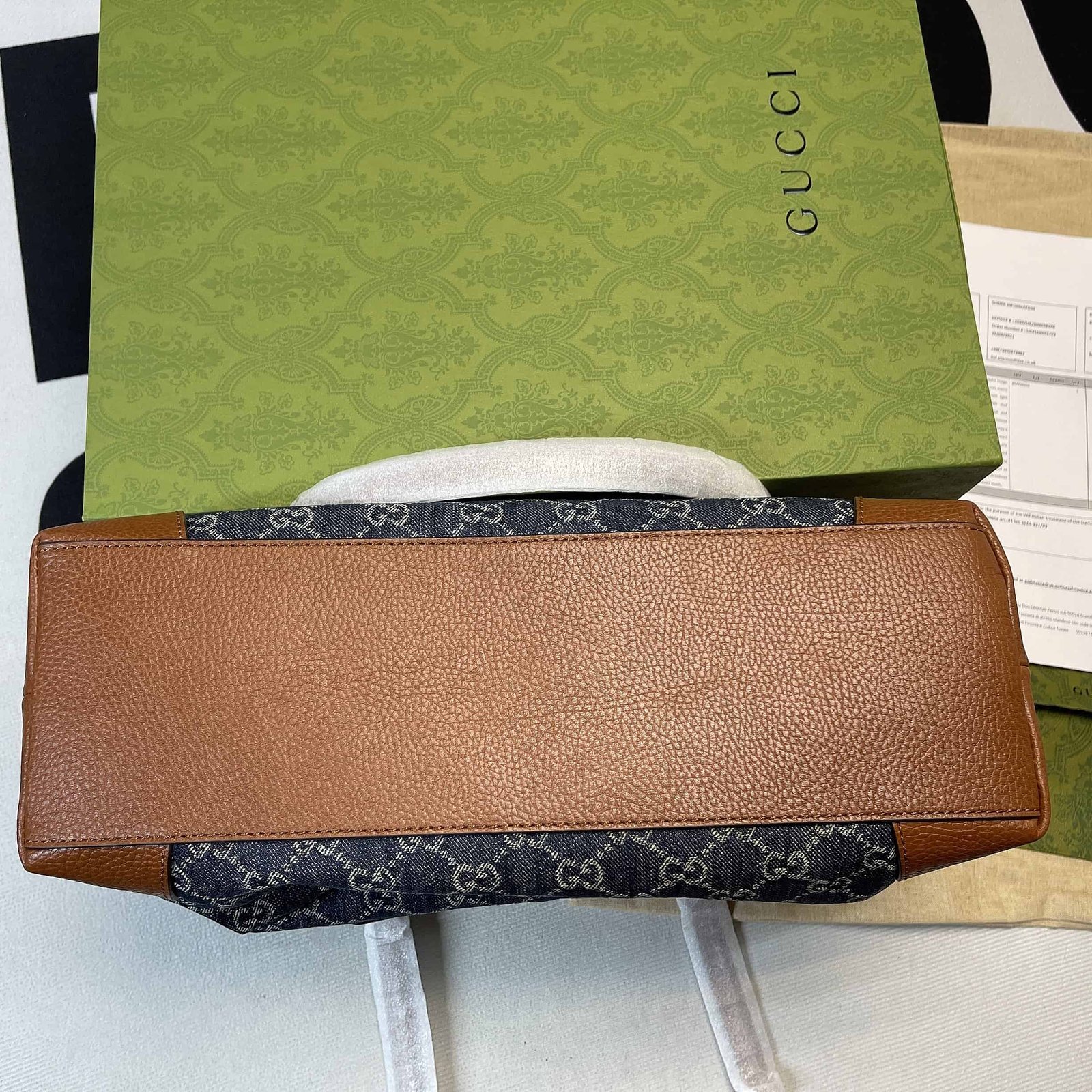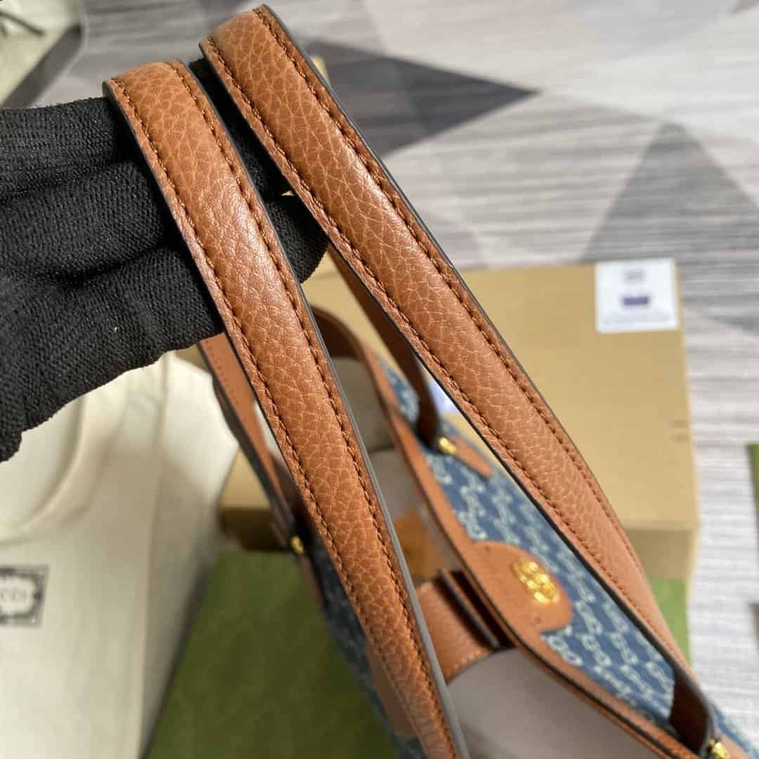 Gucci Ophidia GG Medium Tote Dark Blue And Ivory Eco Washed Organic GG Jacquard Denim For Women 15in/38cm GG ?631685 2KQGG 8375