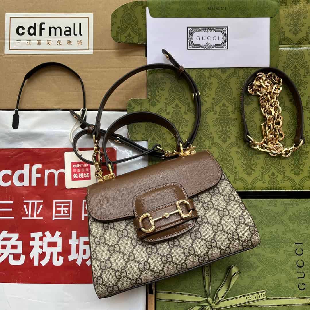 Gucci Ophidia Gucci Horse bit 1955 Mini Bag Light Brown And Beige For Women, Women’s Bags 8.6in/22cm GG 703848 9AAAJ 8563