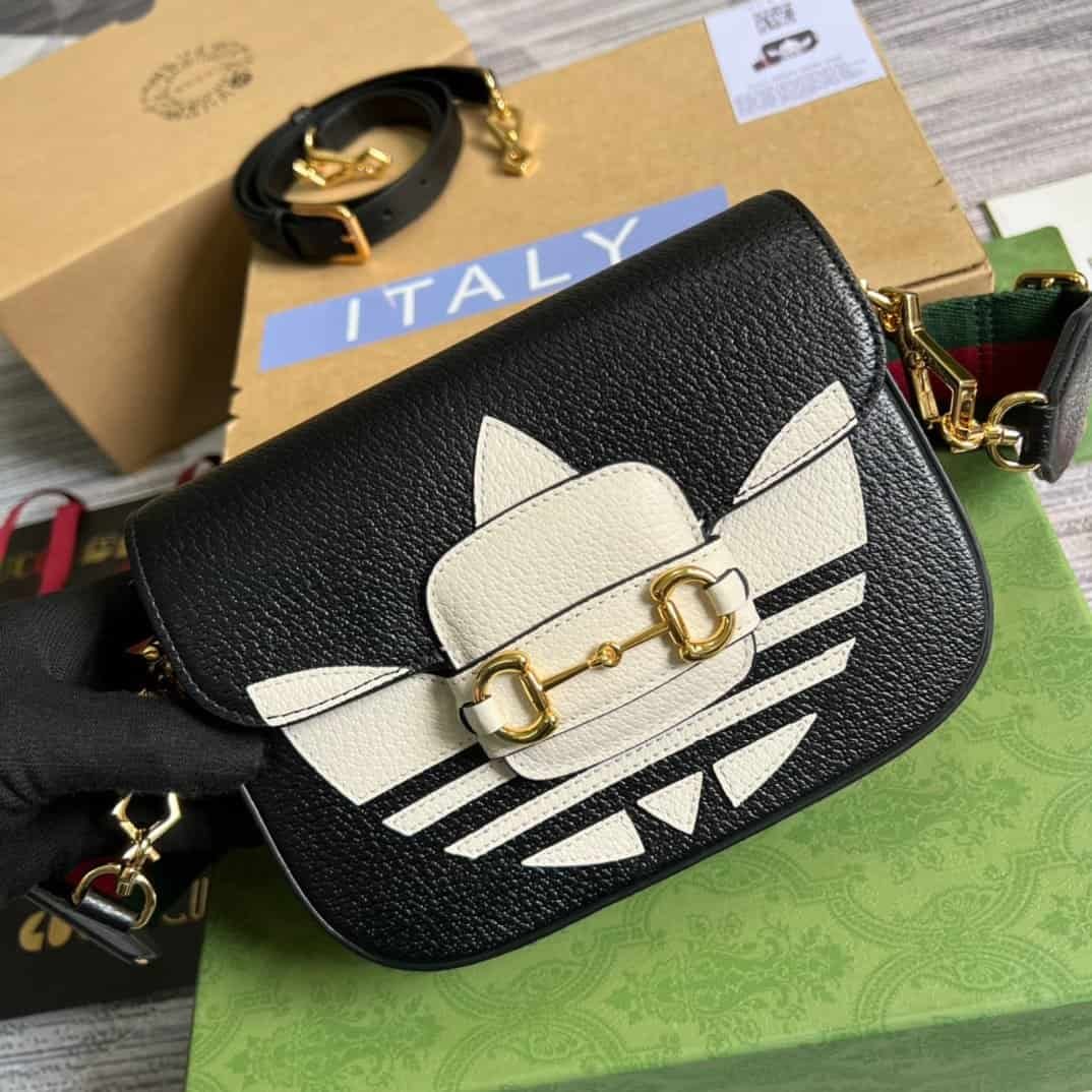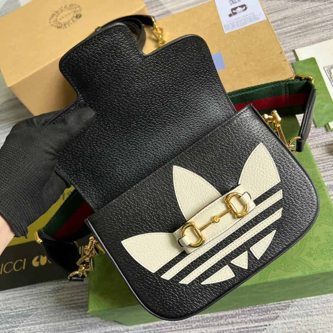 Gucci x Adidas Horsebit 1955 Mini Bag Black For Women, Women’s Bags 8.1in/21cm GG 658574 U3ZDG 8726
