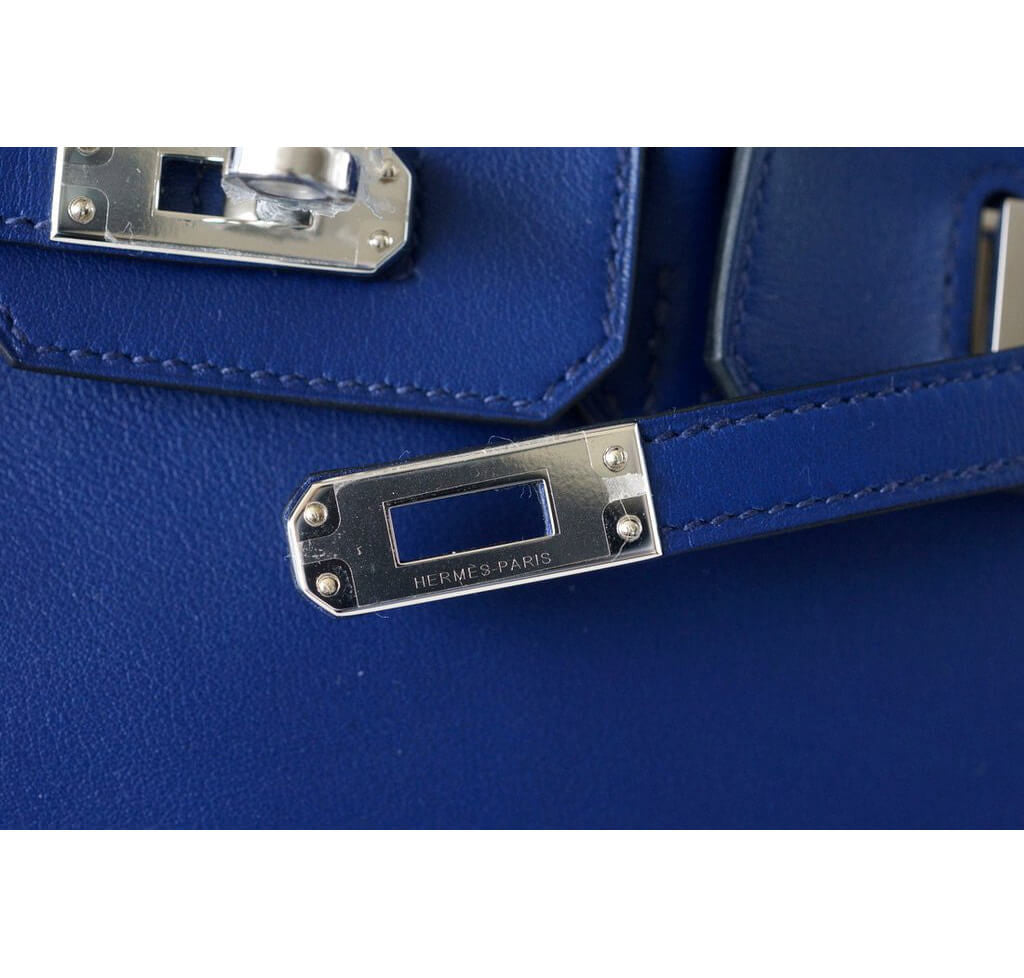 This Hermès Birkin bag is featured in the very coveted 25cm size. The Bleu Saphir color is a dark blue sapphire tone. This rare bag is made from extremely smooth swift leather and is accentuated by palladium hardware. This bag is store fresh and has never been carried. Contact us for additional details and availability.