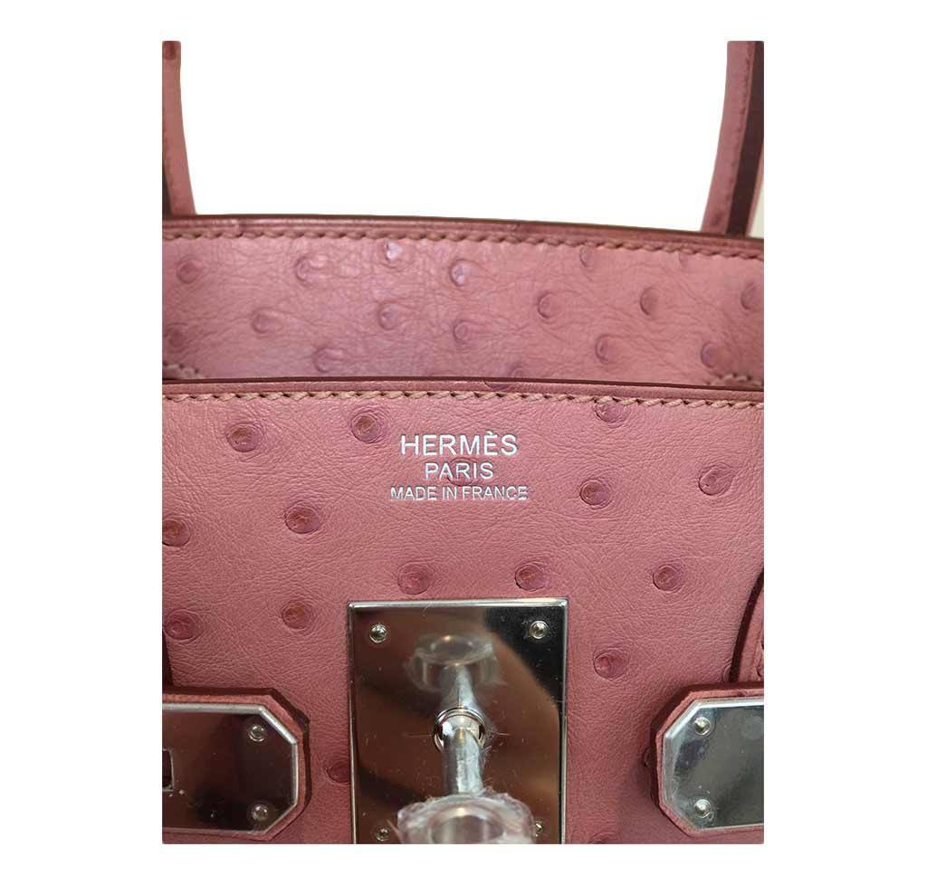 This timeless Hermès Birkin bag is incredibly rare and sought-after. The exotic ostrich leather is accentuated by chic palladium hardware creating a very luxurious appearance. The newly-introduced Terre Cuite color is a very difficult color to achieve, which requires a rigorous and technical dying process, making Hermès bags in this color very limited. This bag is store fresh and has never been worn. The stamp is âTâ without a shape, which signifies 2015 as the year of production. Contact us for availability and additional details.