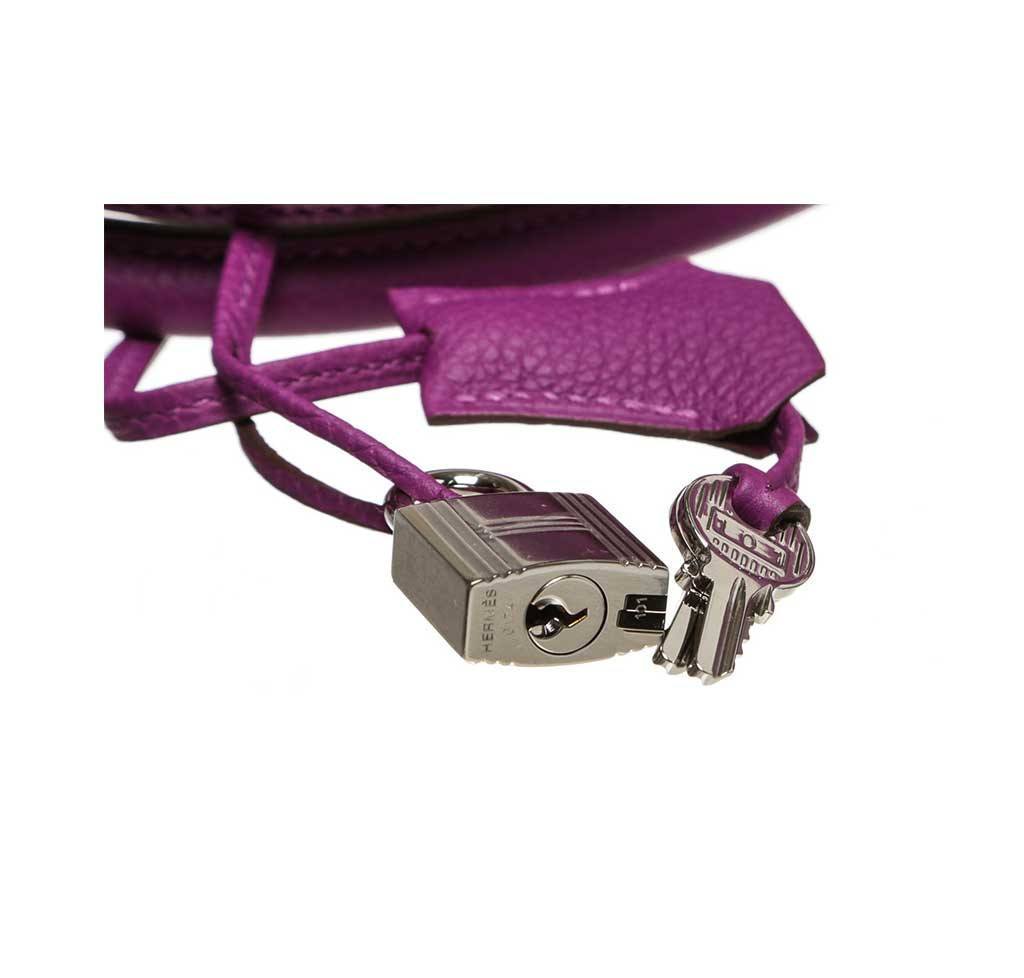 This store-fresh Hermès Birkin 35cm bag is made from smooth togo leather. This bag is featured in Anemone, which is a purple color. This Birkin bag is accentuated by palladium hardware and comes with all of the original accessories. The blind stamp is “T” without a shape, denoting 2015 as the year of production.