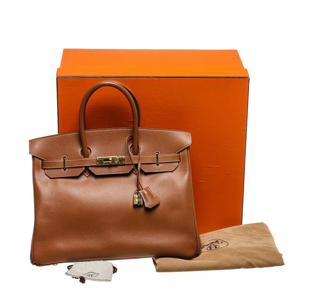 Treat yourself to this breathtakingly gorgeous Birkin bag by Hermès featured in the coveted size 35. This bag is featured in gold Epsom leather, which is very scratch-resistant and super smooth to the touch. Gold hardware accentuates the leather to perfection, giving it a luxurious appearance that stands out. Don’t miss out on this rare and sought-after Birkin bag and get heads spinning everywhere you go.