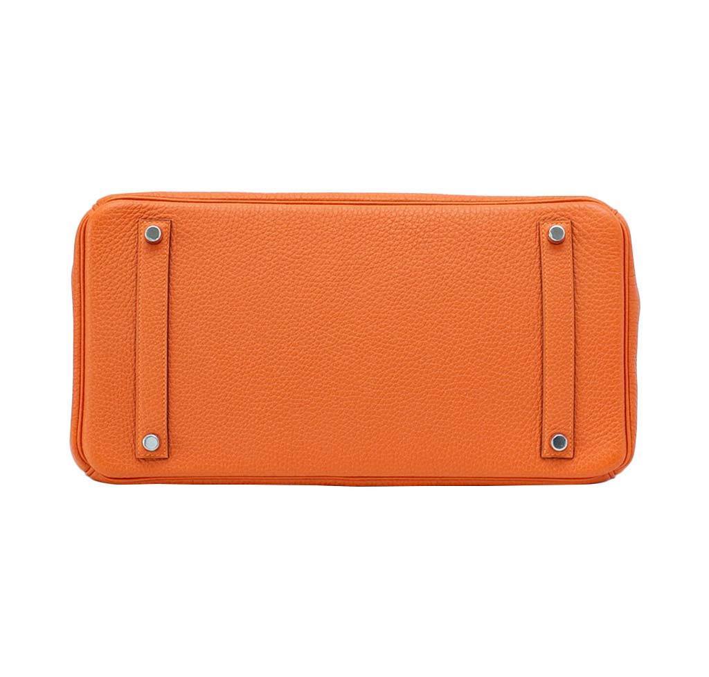 This timeless Hermès Birkin 35cm bag is featured in the H Orange color, which is a bright tangerine tone and a classic Hermès color. This bag is made from Togo leather, which is soft to the touch. This Birkin bag is store-fresh with all of the original accessories. Palladium hardware accentuates this bag, which has never been carried.