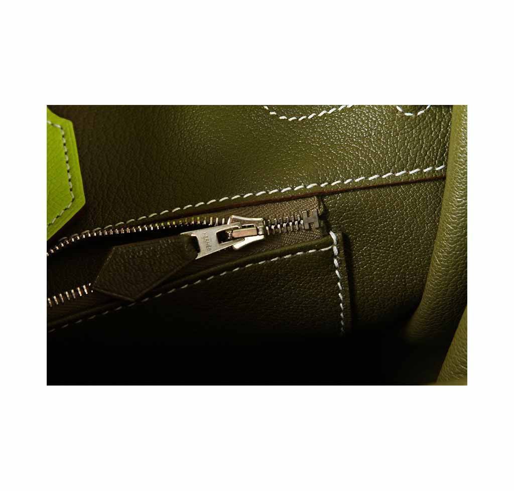 Treat yourself to the last bag you’ll ever want to own by getting your hands on this gorgeous Hermès Birkin in size 35. The Kiwi and Lichen colors are incredibly rare and sought-after. As a Candy Collection Birkin, this bag is super exclusive and hard to find anywhere else. The almost completely scratch-resistant Epsom leather is accentuated with luxurious palladium hardware. Don’t miss out on this breathtakingly beautiful Birkin bag by Hermès.