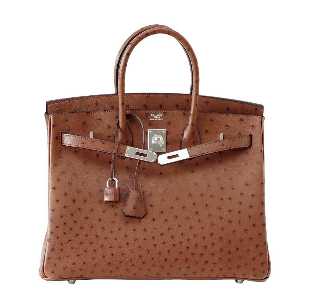 This Hermès Birkin handbag is one of kind with its ostrich finish and beautiful Etrusque brown color. If youâre looking for a fancy addition to your style, thereâs no better way to add class to your look than by carrying around this elegant Hermès Birkin bag. With its neutral tone, you will be able to fit this purse with almost any type of outfit. As one of the most desired handbags in the world, this 35cm collectible is extremely hard to come by. Its rarity adds extreme amounts of value, making it a dream handbag for any woman.