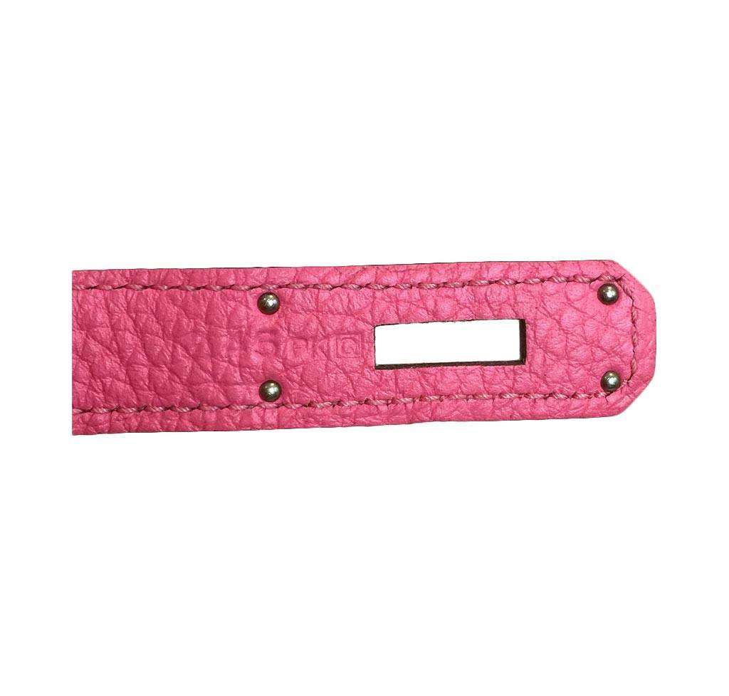 Smooth Togo leather makes up the exterior of this exquisite Hermès Birkin bag featured in size 35cm. Palladium hardware accentuates this handbag and all of the original accessories are included. The stamp is located on the strap of the bag and is “Q” in a square, which denotes 2013 as the year of production. This Birkin bag is made in the rose lipstick color, which is a light pink with white undertones.