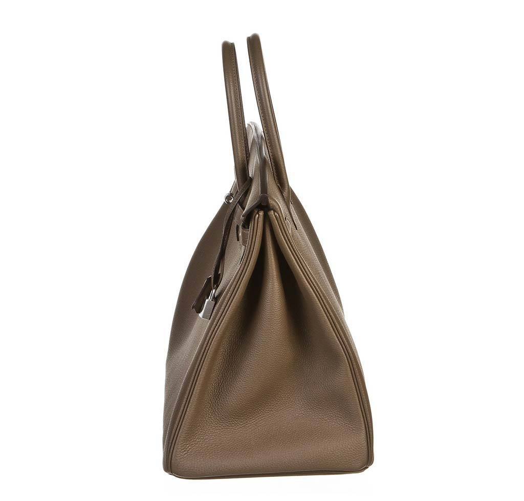 This timeless Hermès Birkin bag is featured in the sought-after 40cm size. This bag is featured in the Taupe color, which is a brown tone. Palladium hardware accentuates this store-fresh Birkin bag and the blind stamp is “R”, denoting 2014 as the year of production. This bag is made from togo leather, which is soft to the touch and highly resistant to scratching.