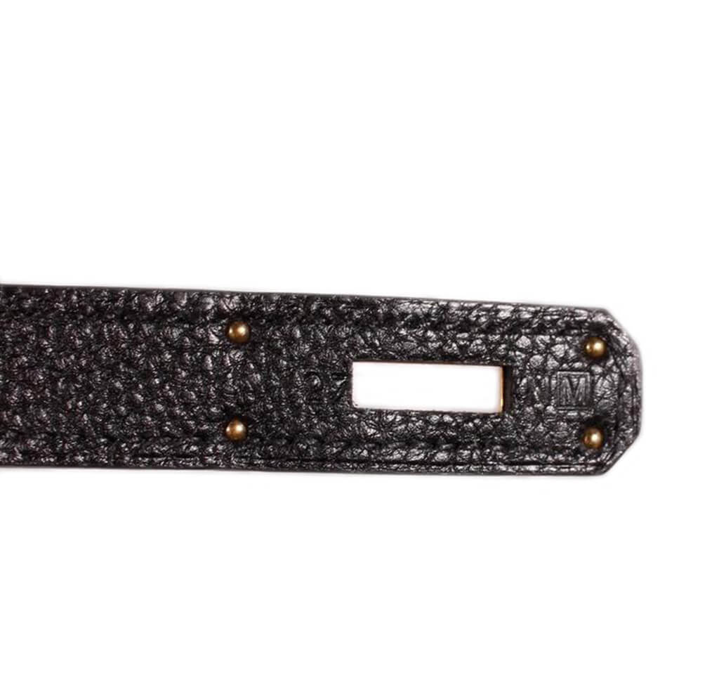 This Hermès Kelly 32cm bag is made from smooth Togo leather, which originates from calf. This bag is featured in black and is accentuated by gold hardware. The blind stamp is “M” in a square, which denotes 2007 as the year of production. All of the original accessories are included and the hardware still has the protective plastic coverings.