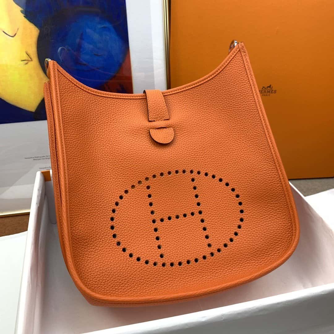 Hermes Evelyne III 29 Bag Orange With Silver-Toned Hardware For Women, Women’s Shoulder And Crossbody Bags 11.4in/29cm H056277CC9J