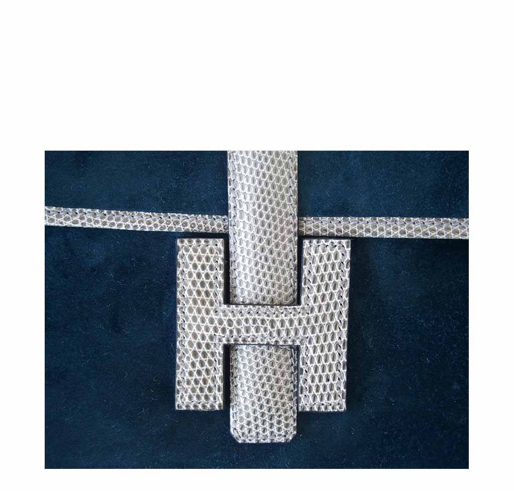 The Hermès Jige Elan is one of the classiest clutch bags in the world and this one is a limited edition rare piece. This bag is made from suede and lizard, making it a super rare dual-material Hermès clutch. With the beautiful two colors blue ocean and gris fonce, itâs easy to make this bag look good with anything you wear. Created by the finest bag-makers in the world, itâs almost impossible to find it anywhere else, making it very exclusive. Display class and elegance as you walk down the streets with this limited edition Hermès Jige Elan clutch.
