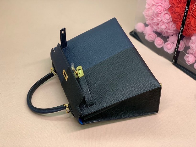 Hermes Kelly 28 Sellier Epsom Bag Black/Navy Blue For Women, Women?s Handbags, Shoulder Bags 11in/28cm
