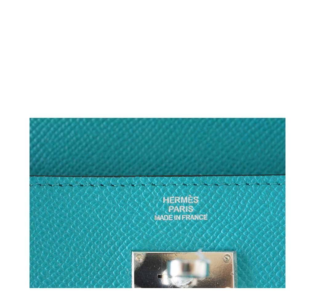 This Hermès Kelly Long Wallet Clutch is made from Epsom leather, which is very soft to the touch and highly resistant to scratching. This bag is featured in the Paon color, which is a blue tone. This Kelly Clutch bag is accentuated by palladium hardware, has never been carried and is in store-fresh condition.