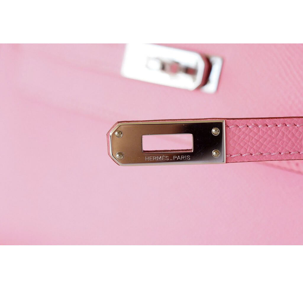 This Hermès Kelly Pochette bag is very difficult to find anywhere else. Made from Epsom leather, this bag is extremely smooth and highly resistant to scratching. This Kelly Pochette bag is accentuated by palladium hardware and is featured in Rose Confetti, which is a bright pink. This Hermès bag is store-fresh and has never been carried.