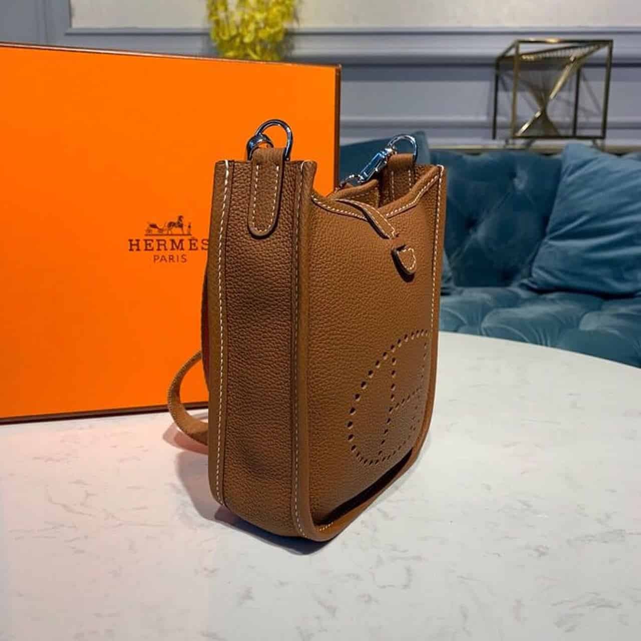 Hermes Mini Evelyne Brown For Women 7.8in/20cm