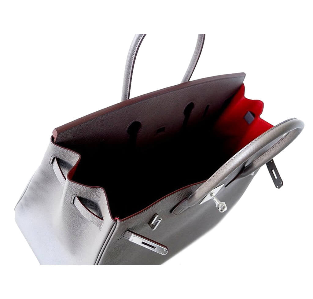 This Hermès Birkin Special Order bag in size 35cm is one of a kind. The exterior of this bag is featured in Etain and the interior is Rouge Casaque. This bag is made from smooth Epsom leather and is accentuated by palladium hardware. The horseshoe symbol next to the embossing is added to all special order Hermes bags. All of the original accessories are included with this New bag.