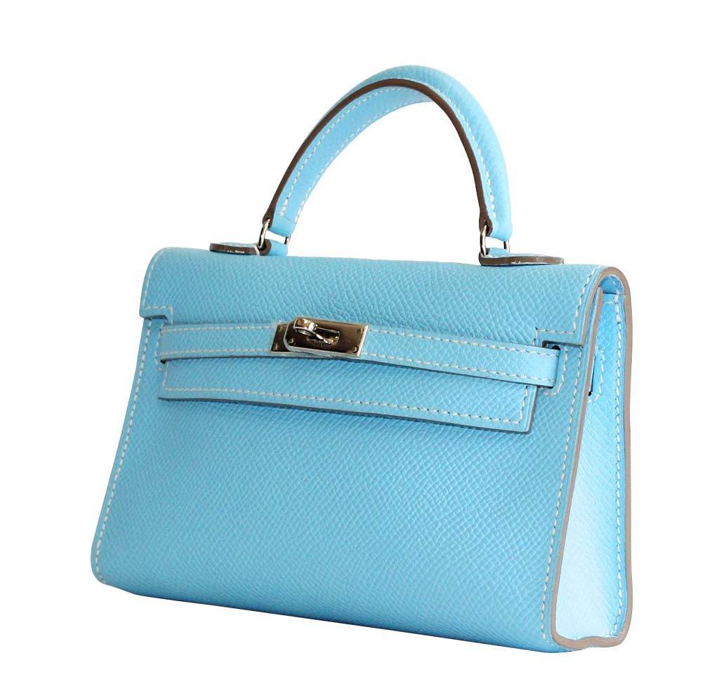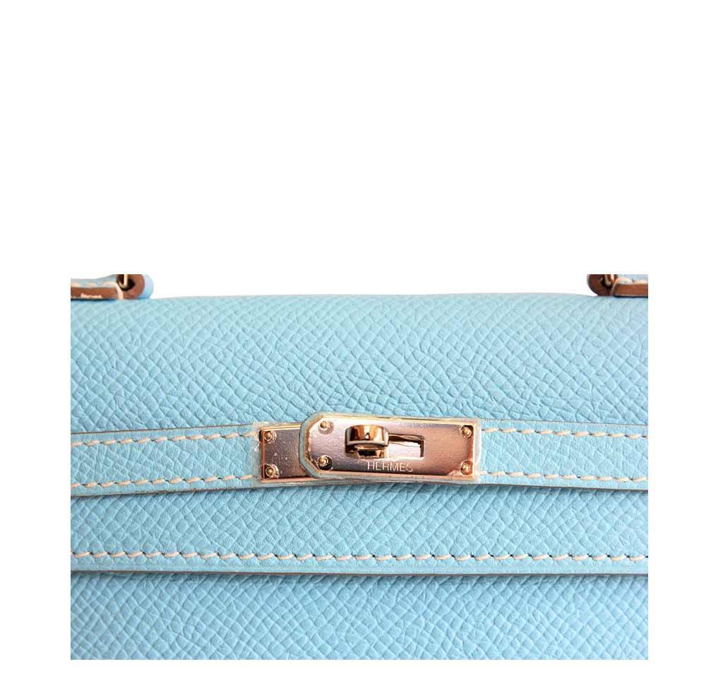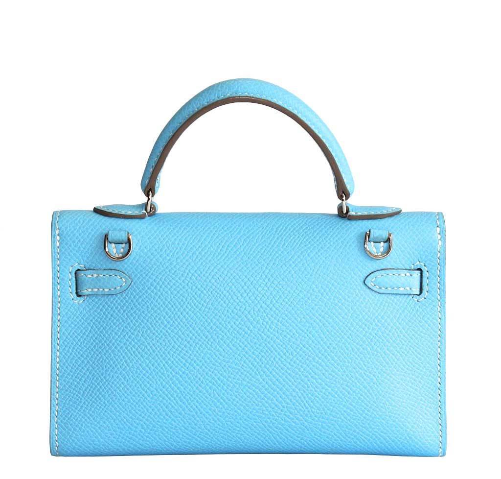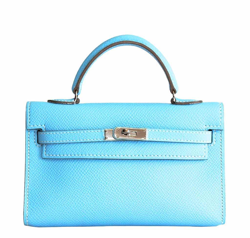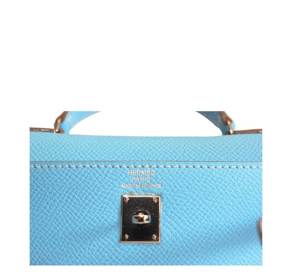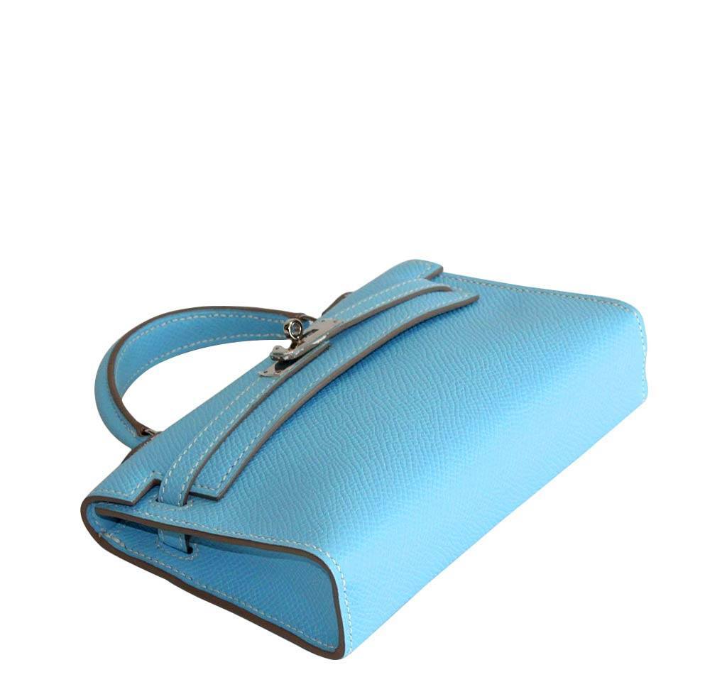 This rare tiny Kelly bag is adorable and extremely unique! It is very exclusive and hard to get your hands on to due to its rare small size. The bag is made with amazing Epsom leather, shiny palladium hardware, and is colored in an adorable baby blue. It has a small handle so that it can be carried with ease, and can fit all of your most important belongings during any outing.