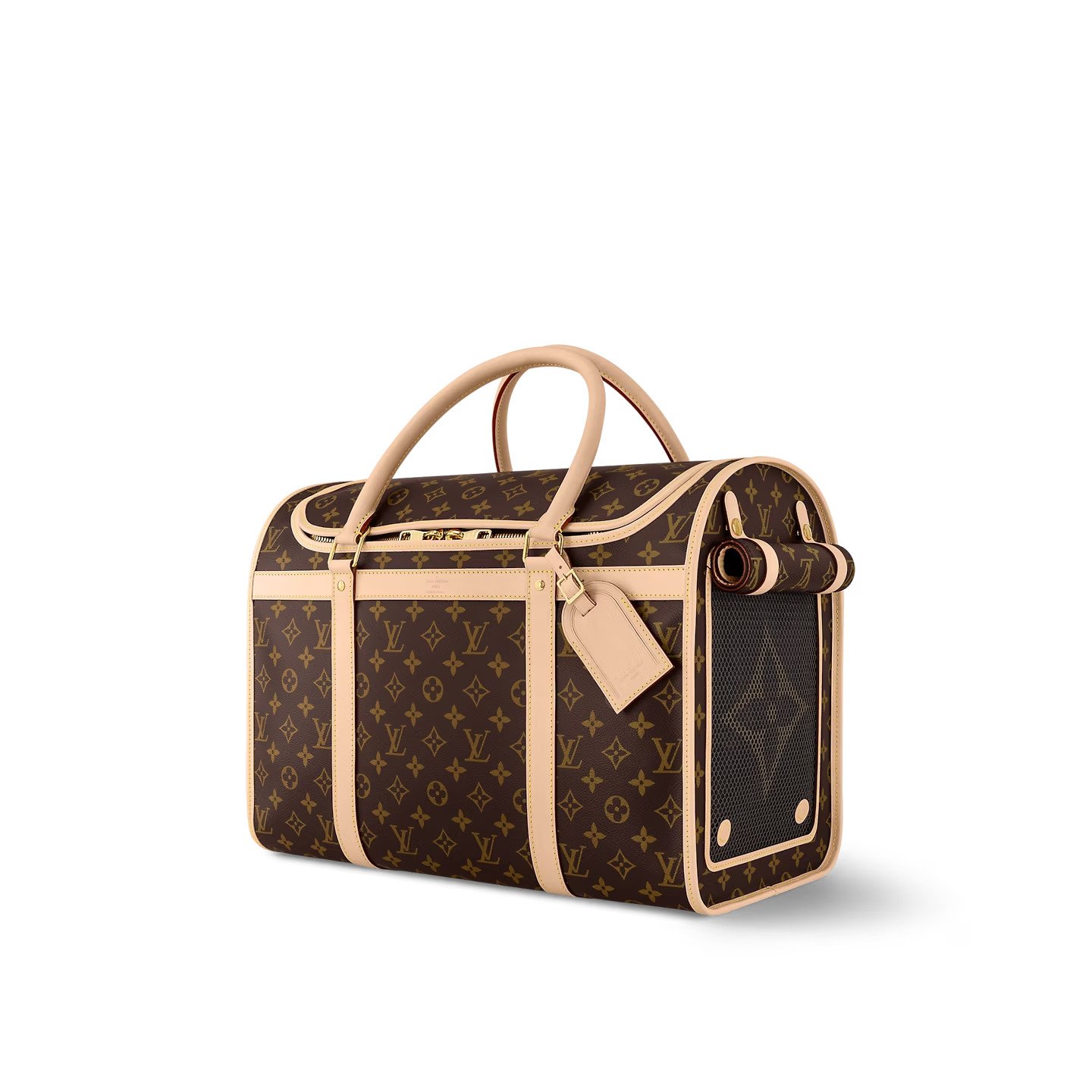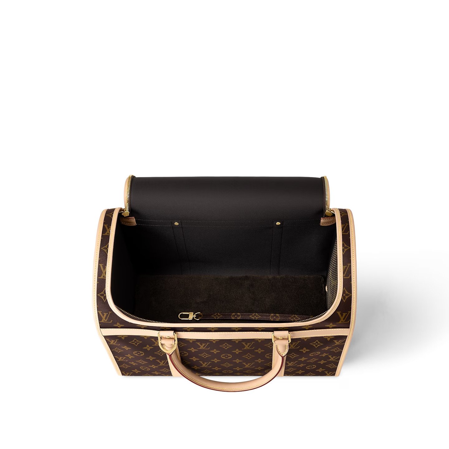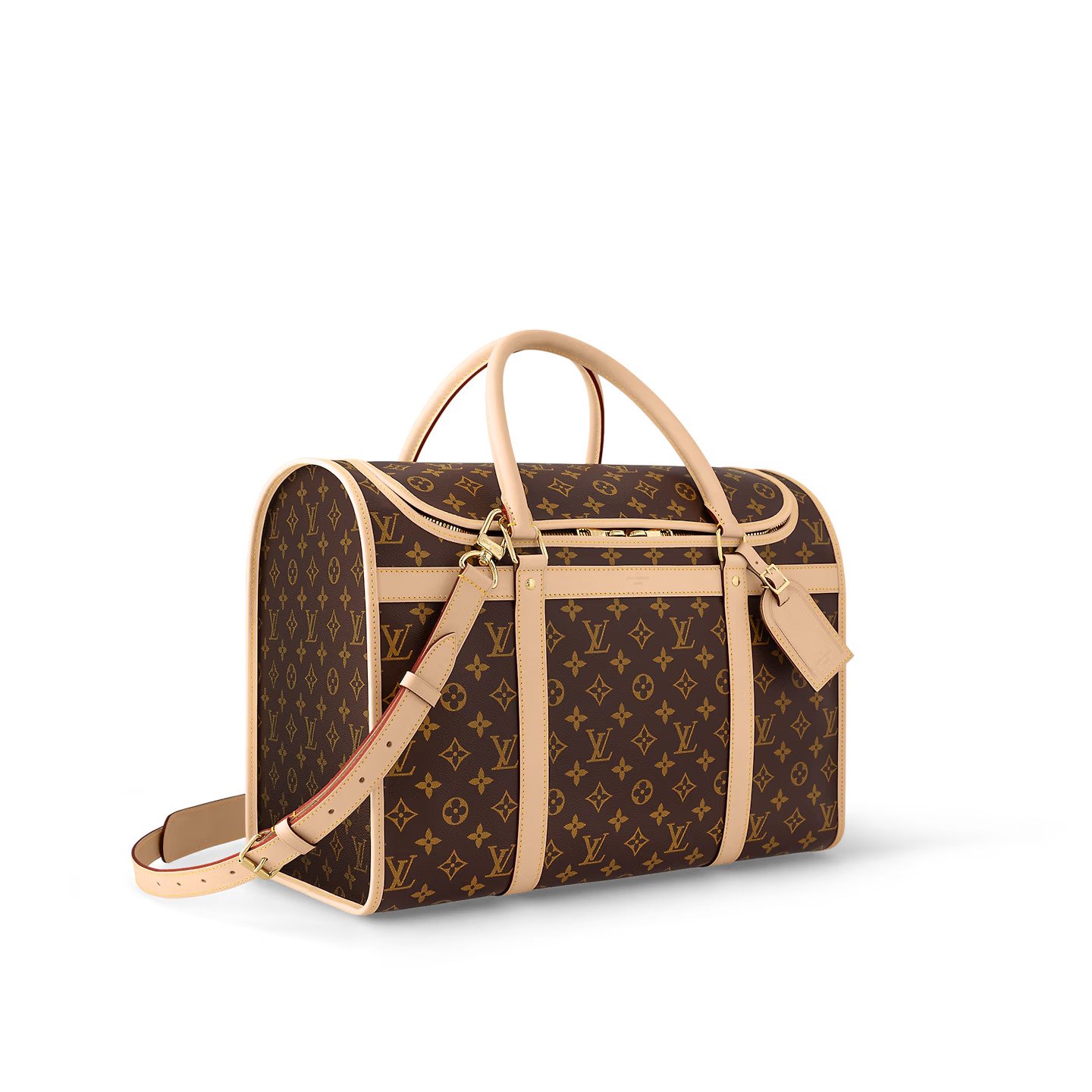 Louis Vuitton?s classic Dog Carrier has been updated with a sleek design and handy new functions. Styled in Monogram canvas, it is designed for comfort with plush carpet and a soft ventilation net. Easy to carry with its adjustable shoulder strap, it is the stylish, practical way to travel with a pet.