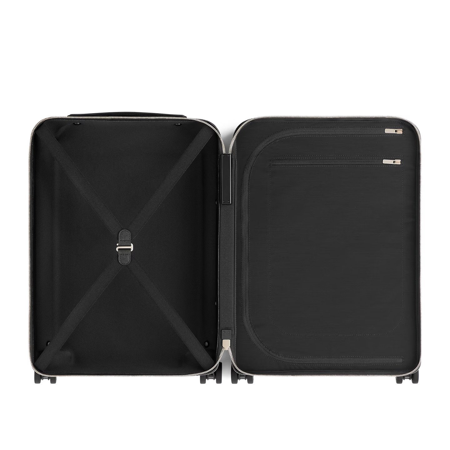 The Horizon trolley bag now comes in supple, sumptuous in a cool shade of greige, embossed with an outsized version of Louis Vuitton’s iconic Monogram pattern. Compact enough to use as carry-on luggage, it is a breeze to roll with its extra wide cane handle and four double wheels. This is a practical, feminine travel bag with a subtle signature look.