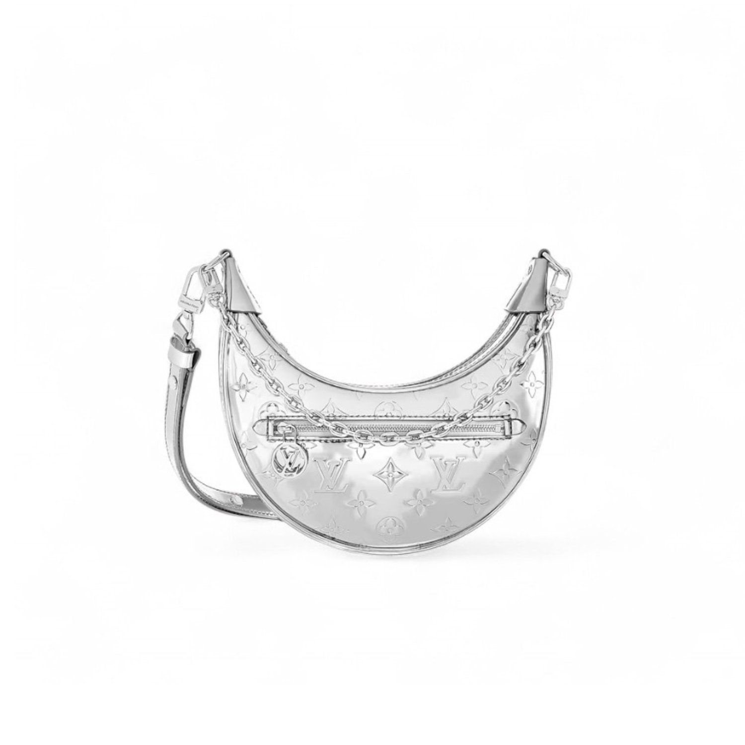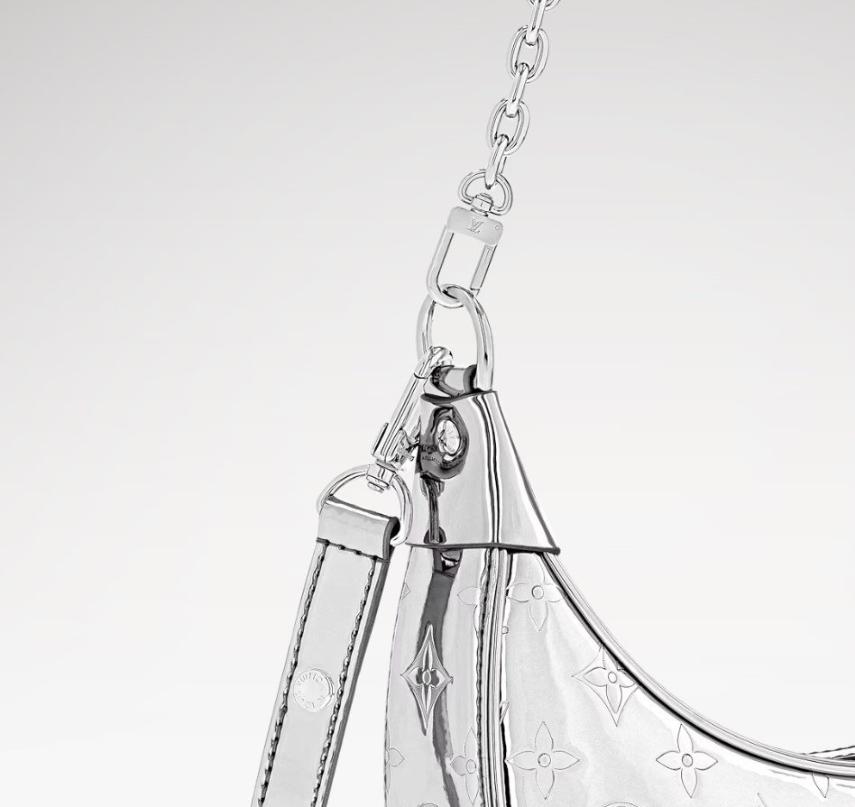• The Monogram Miroir effect takes cues from the House’s iconic metal trunks from 1892, putting a retro-futuristic spin on the original aesthetic. Crafted from monogram embossed coated canvas, this Loop PM from the LV Ski collection has multiple carrying options thanks to the removable and ajustable leather strap and removable chain. Use it by day or night to carry essential items as well as a long wallet.