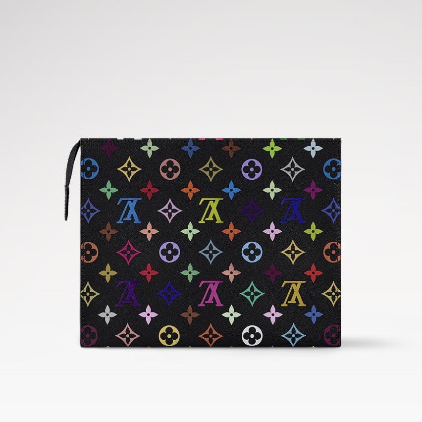 • This staple Toiletry Pouch is elevated with a joyful signature from the re-edition of the Louis Vuitton x Murakami collection. It is crafted in a sleek, structured shape from Monogram coated canvas in a vibrant colorway inspired by the renowned Japanese artist’s go-to palette of rainbow tones. Two inside flat pockets organize essentials, while a silver-toned zipper keeps everything secure.