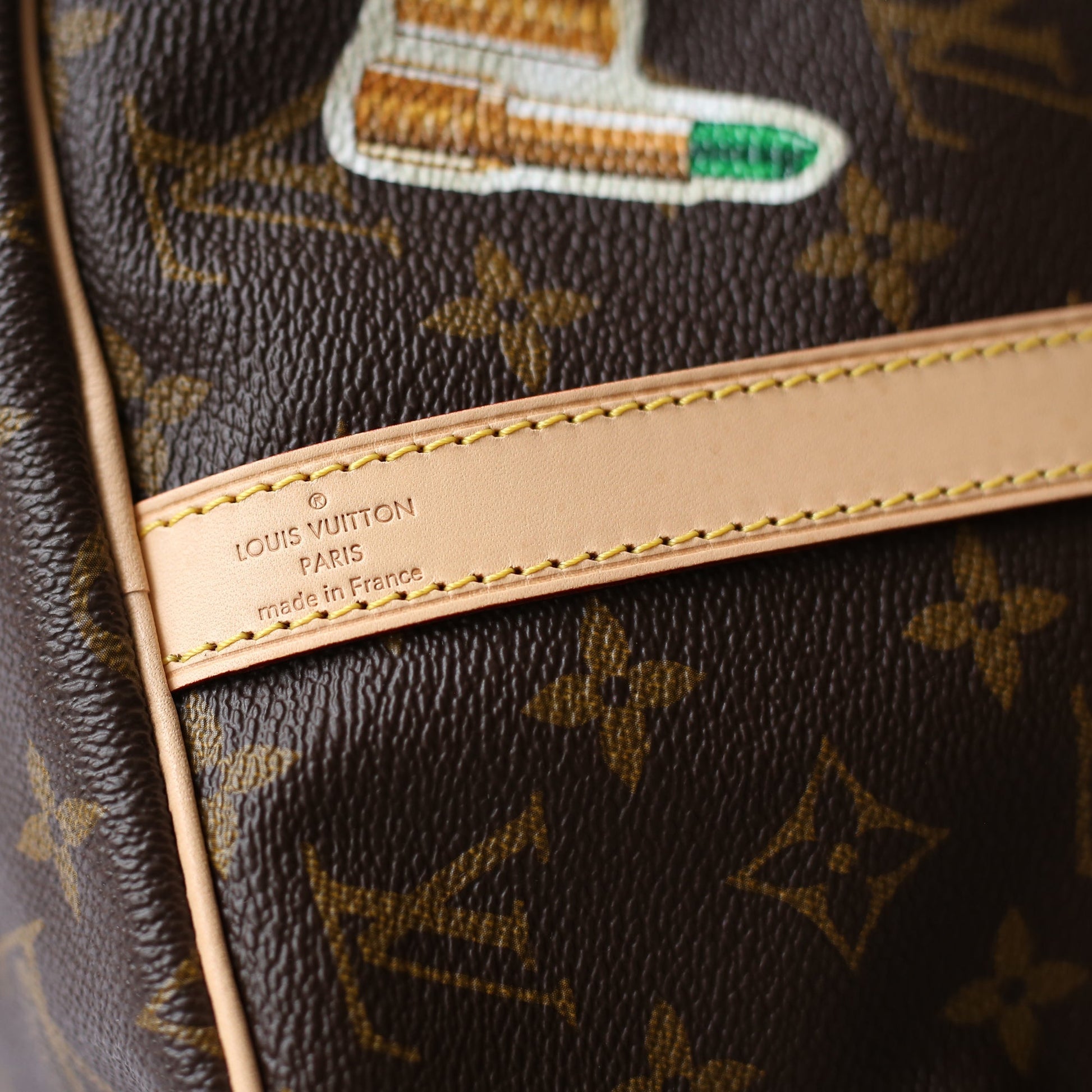 Why Itâs An Investment: The Speedy is an iconic Louis Vuitton design. Its simple lines and chic Monogram canvas immediately appeal to women with an eye for fashion. It’s the perfect bag for the city and has become one of the most coveted pieces from Louis Vuitton for any Louis Vuitton lover. This custom, made-to-order World Tour speedy is a bag that will always be in demand, and valuable for it’s unique and one-of-a-kind design and pattern.